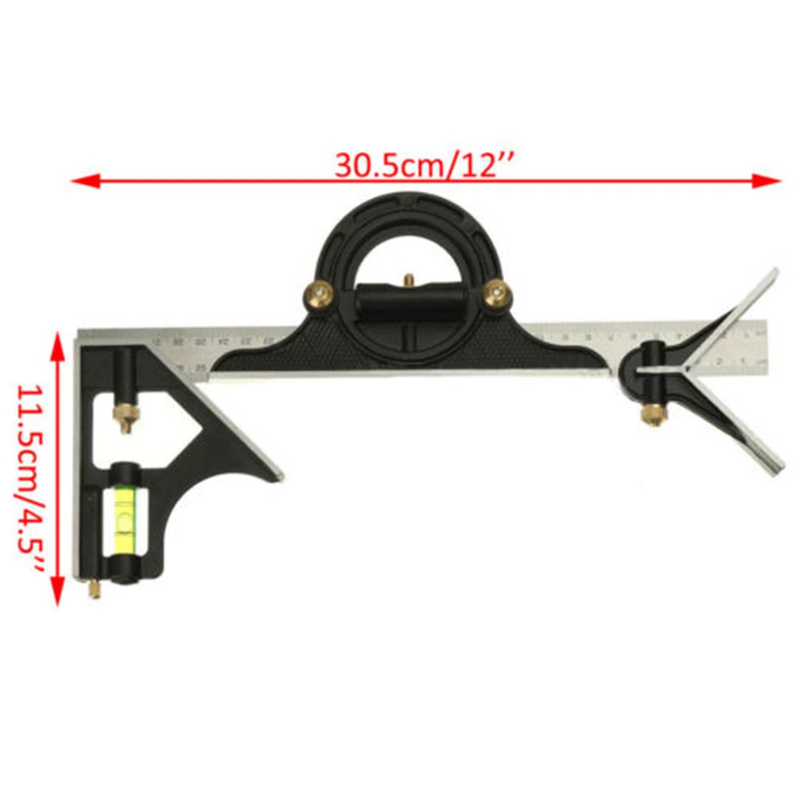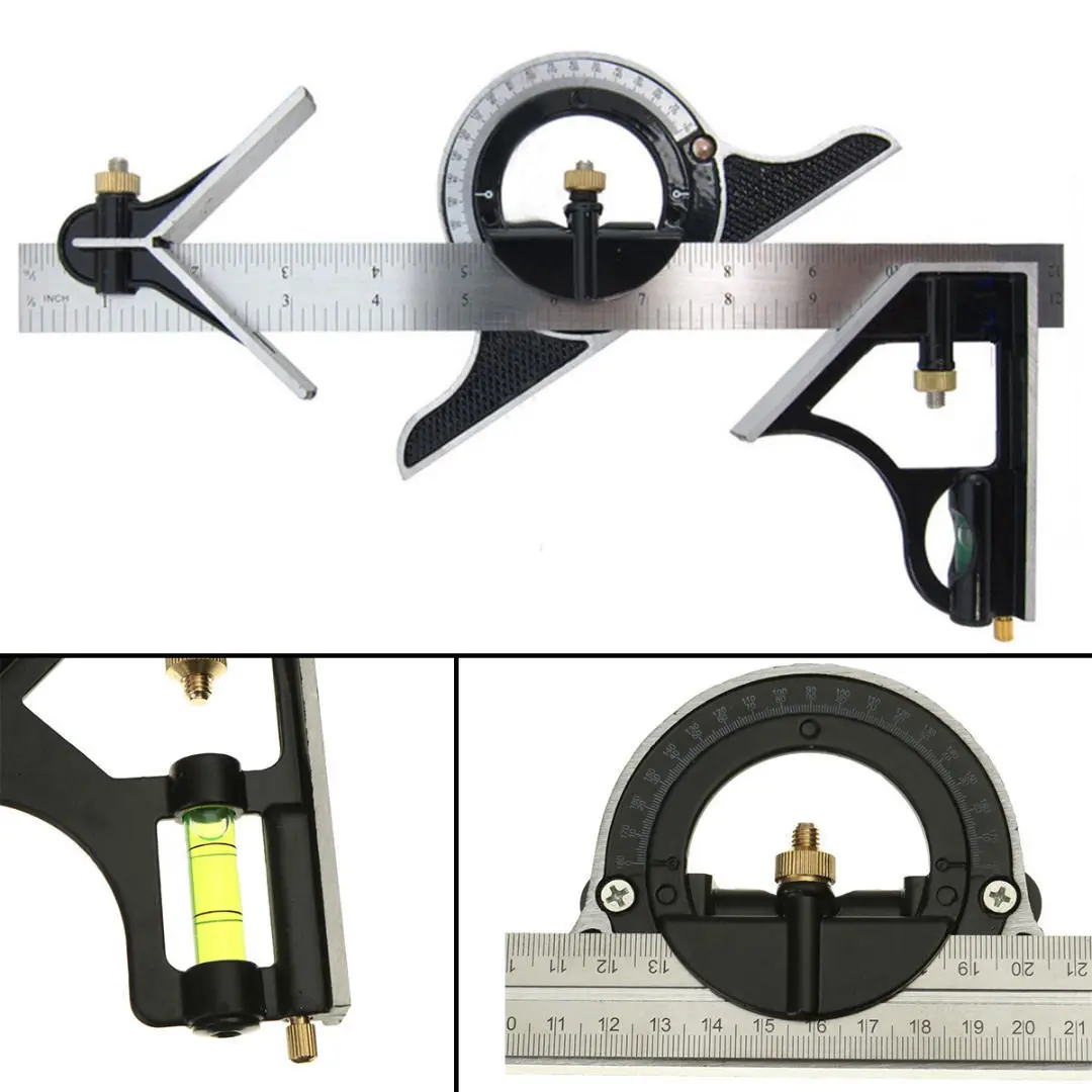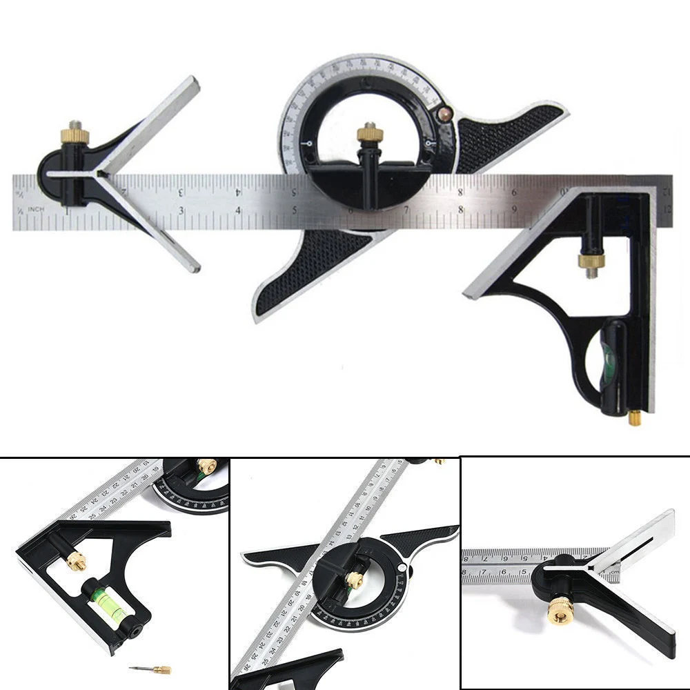 Регулируемая линейка 3 в 1, мульти-комбинация, 300 мм, квадратный угломер, Измерительный набор, угловая линейка, прямоугольный транспортир, уровень, инструменты