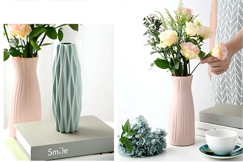 Пластиковая ваза, имитация керамической цветочной горшки, пластиковая ваза для цветов, небьющаяся ваза для гостиной, спальни, украшение для дома