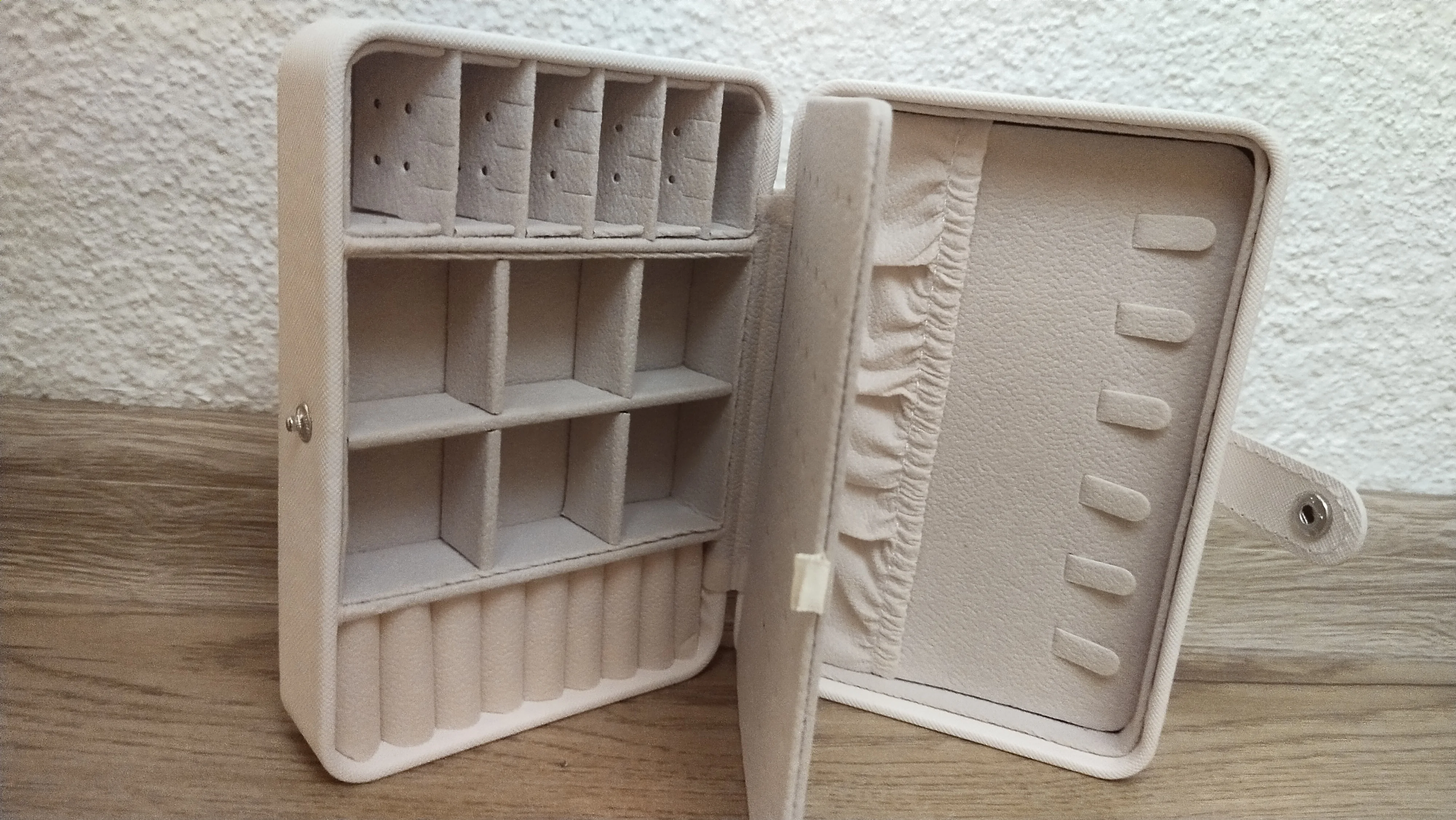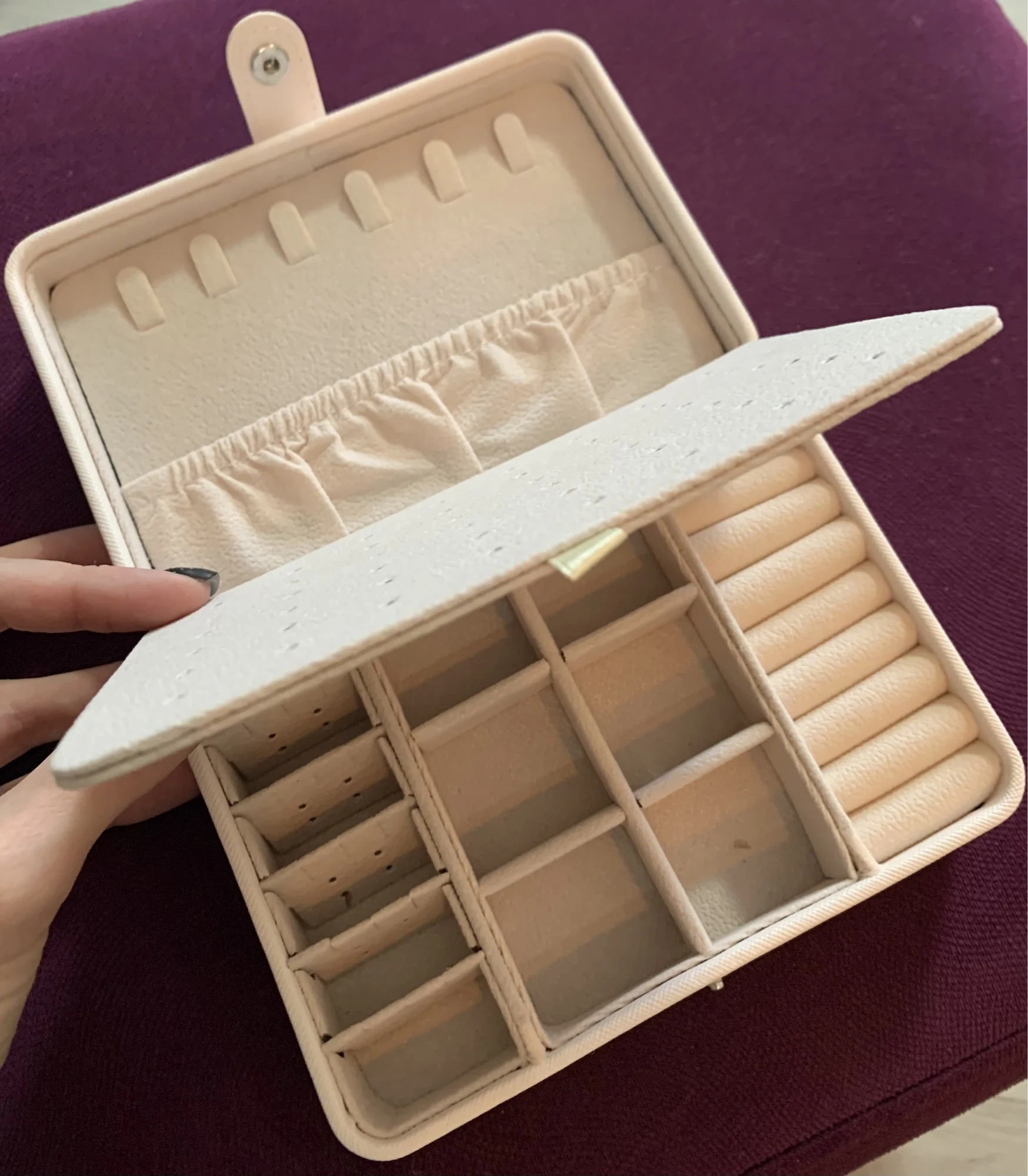 Очень красивая шкатулка нежно-розового цвета, в которую помещается много украшений. Шкатулка была упакована очень надёжно, пахнет приятно, материал напоминает кожу. Левое отделение моей шкатулки отличается от показанного на фото, но меня всё устраивает, оно тоже достаточно функционально. Я покупала со скидкой нового покупателя, поэтому цена меня очень порадовала. Стоит ли покупать по полной цене не знаю, но для меня шкатулка отличная. Спасибо!