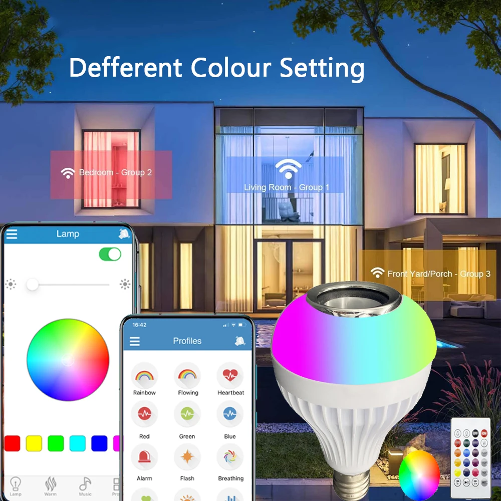 Лампа музыкальная меняющая цвет, 12 Вт, RGBW, E27