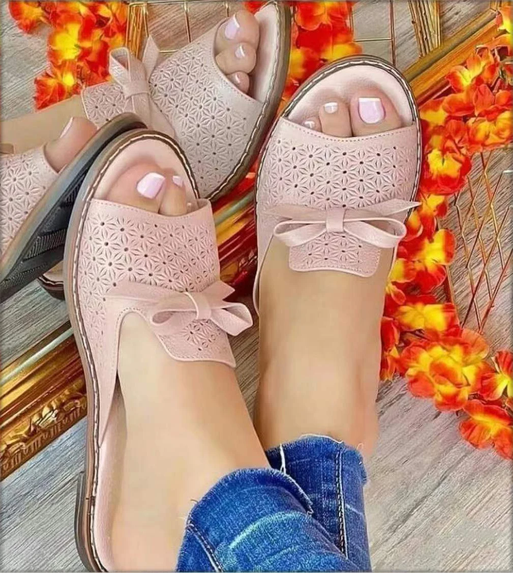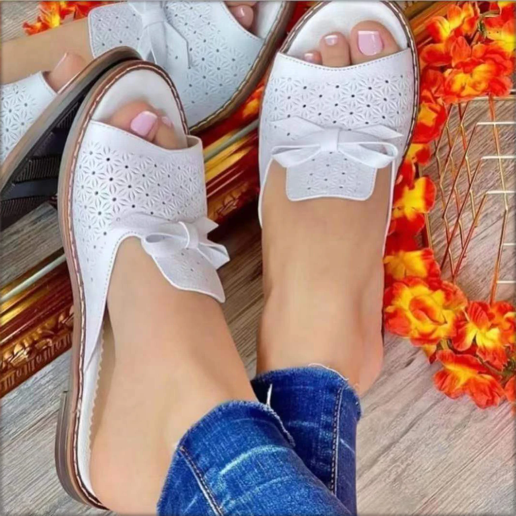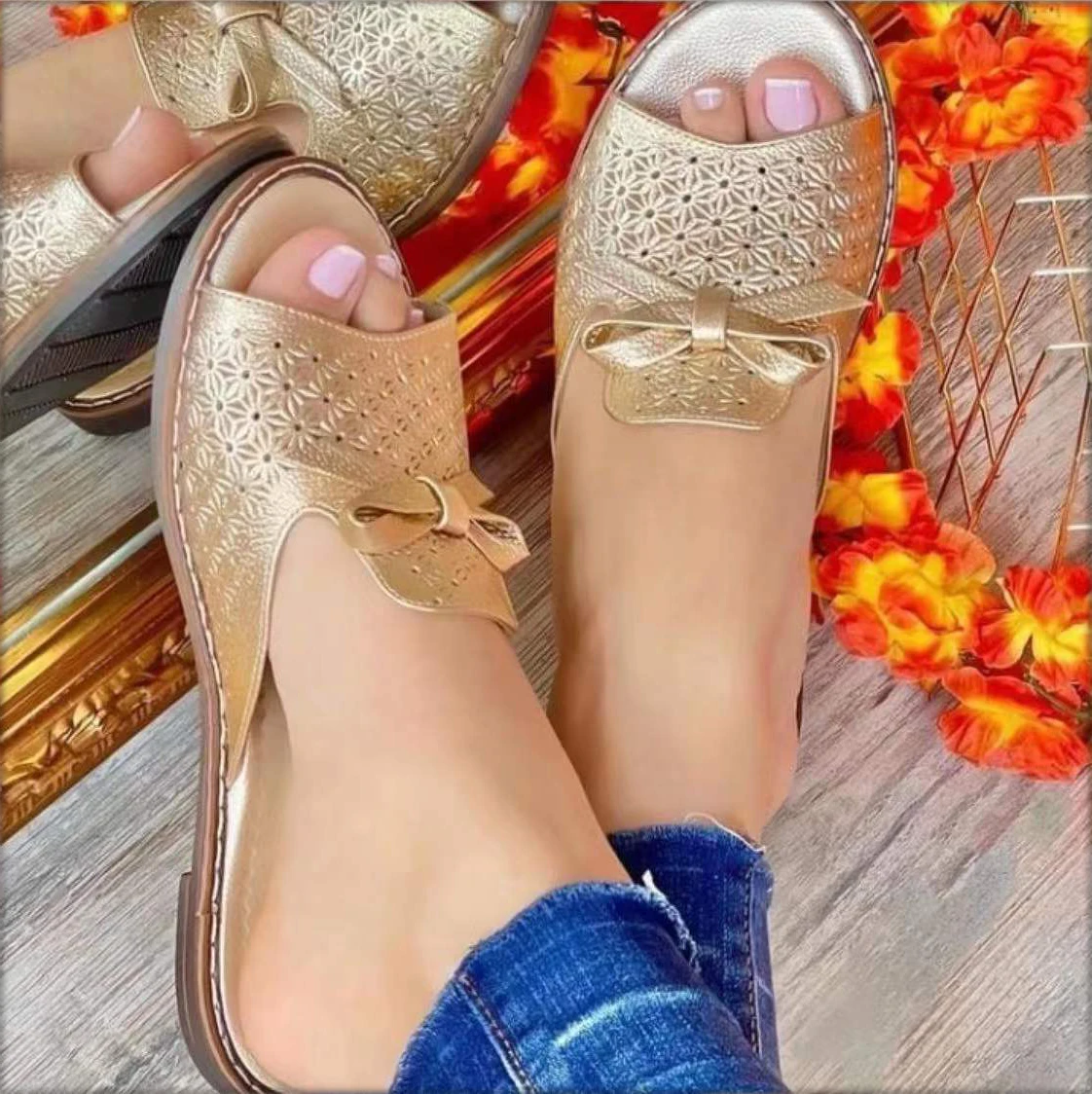 Женские летние слипоны с полыми шлепанцами, женские туфли из искусственной кожи с бантом, женские модные повседневные женские тапочки на плоской подошве, новинка 2022 года