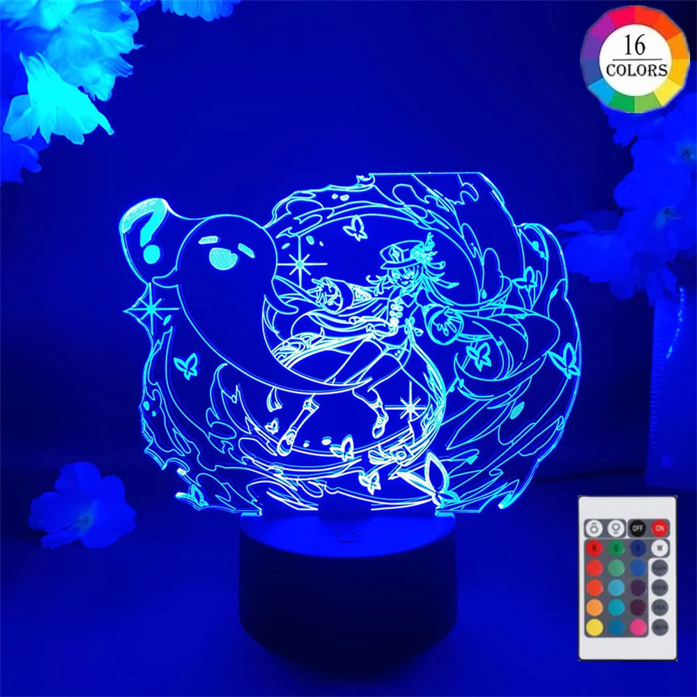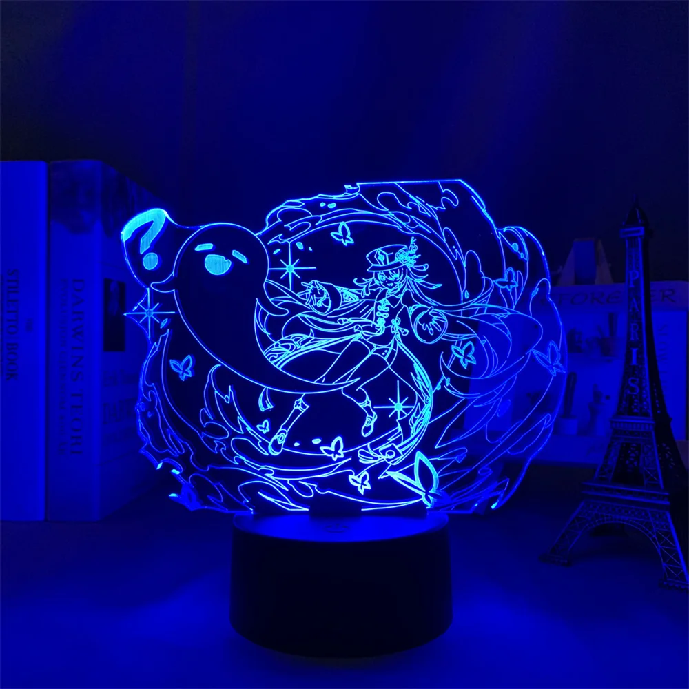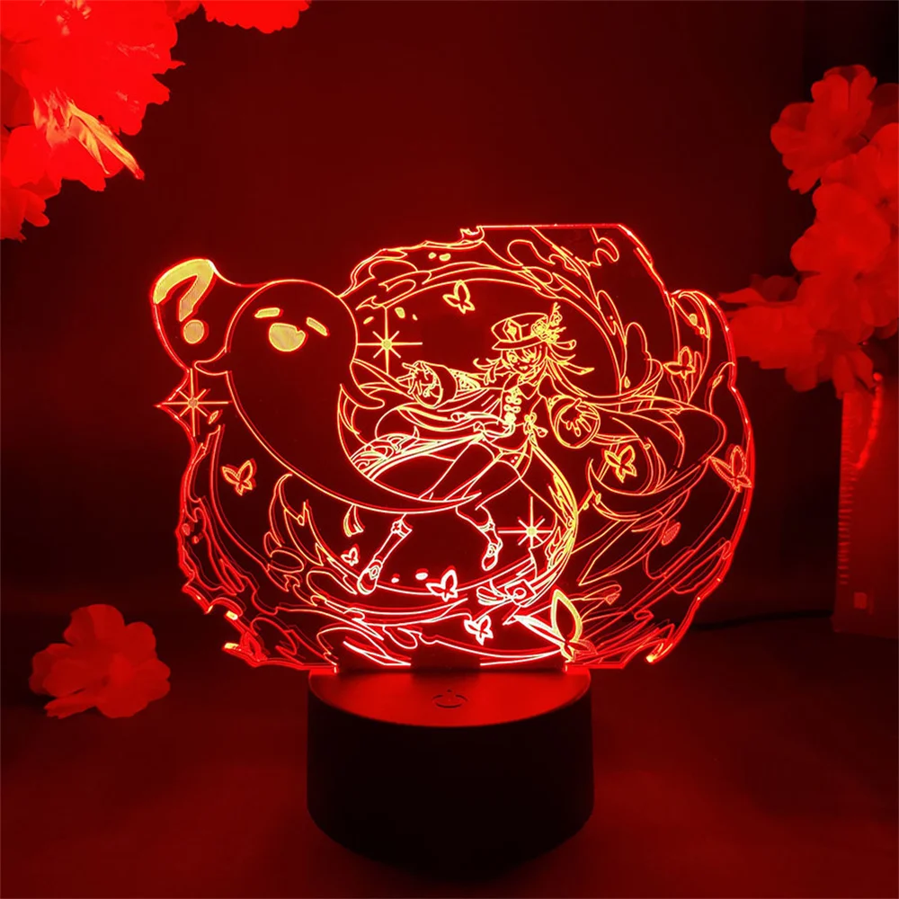 Игра Genshin воздействия рисунок Hutao 3d светодиодный Ночной светильник акриловые светодиодные лампы анимации онлайн игры Genshin воздействия Ху Тао светильник
