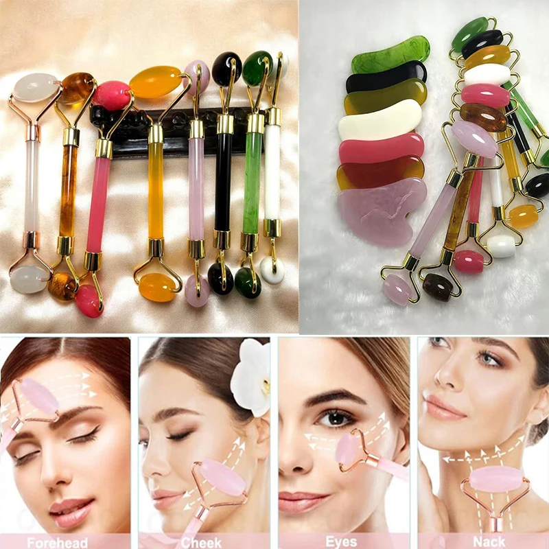 Массажный массажер для лица Guasha, массажер для шеи Gua Sha, скребок для лица, для снятия морщин, роликовый скребок, набор Guasha