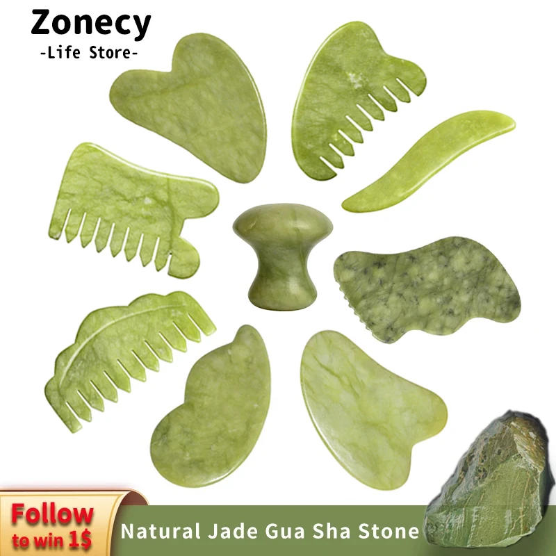 Натуральный набор гуаша для лица, гриб гуаша, Нефритовый камень, массажная расческа, инструменты для тела, здоровье, гуашь, скребок