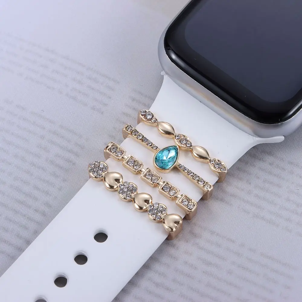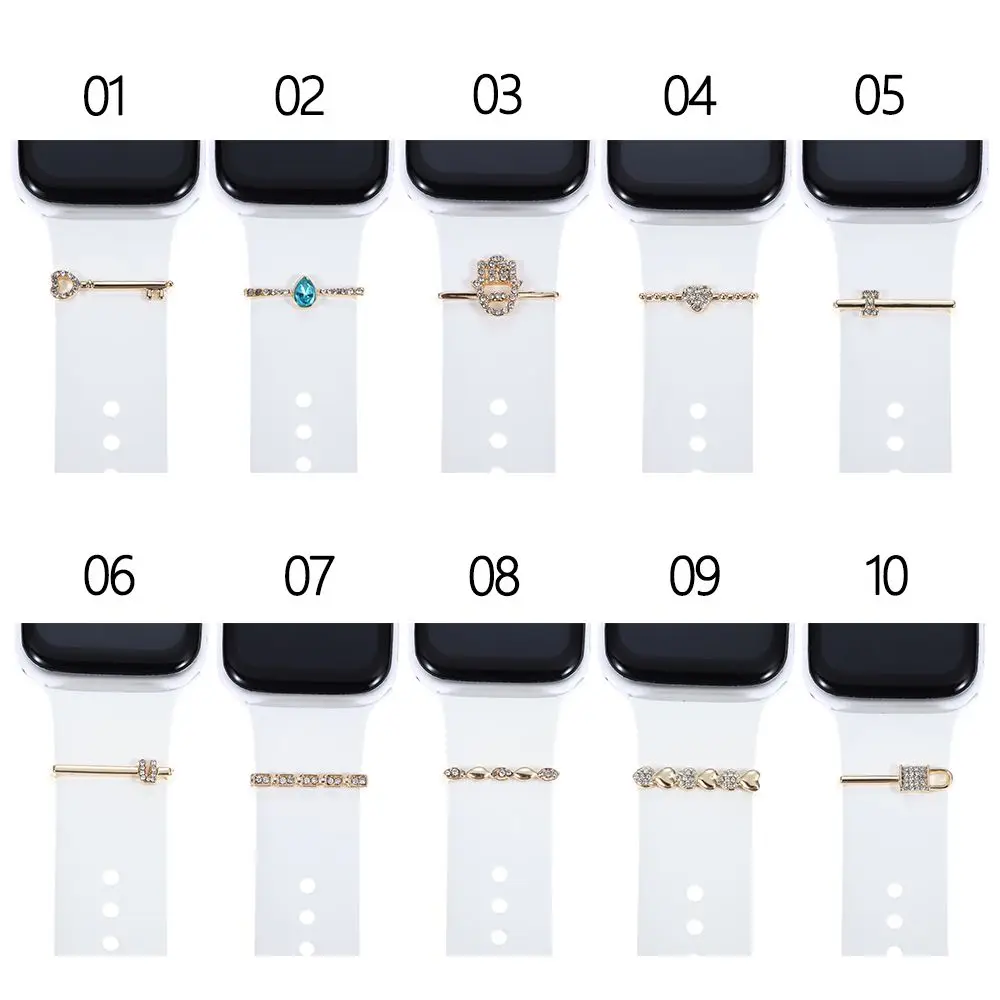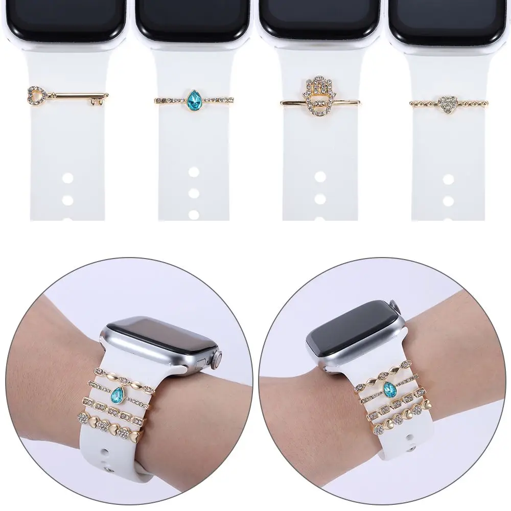 Брелок в форме сердца, острые металлические подвески, декоративное кольцо для ремешка Apple Watch, бриллиантовое украшение, силиконовый ремешок для смарт-часов, аксессуары