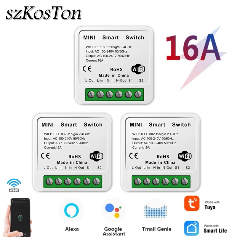 Модуль переключателя Tuya 16 А с поддержкой Wi-Fi и голосовым управлением