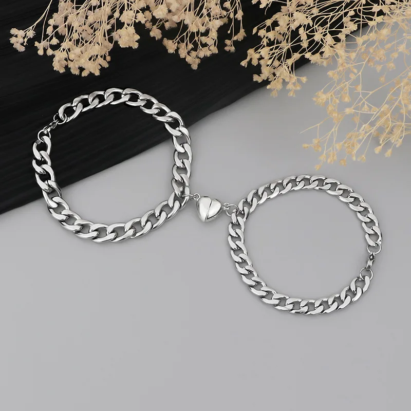 Браслеты-цепочки серебряного цвета для мужчин и женщин, романтичные украшения на магните из нержавеющей стали в стиле панк, Подарочная бижутерия, 2 шт.