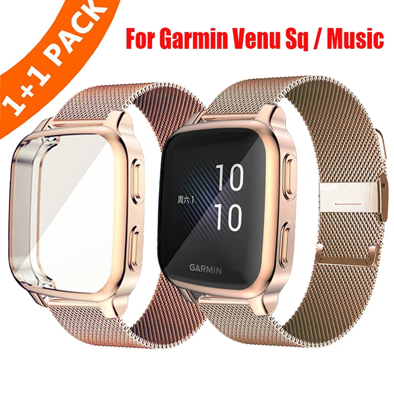 Металлический ремешок, чехол, протектор для Garmin Venu Sq, умные часы, аксессуары для Garmin Venu Sq, музыкальный браслет, полное покрытие, корпус, рамка.Особенности: