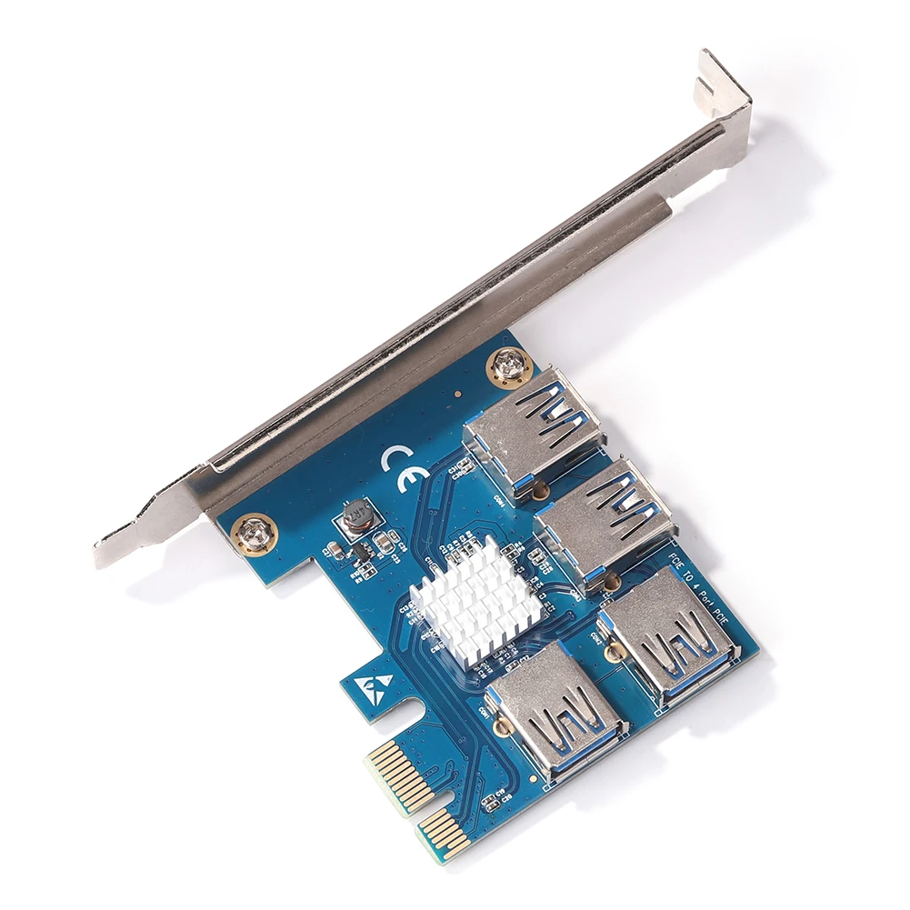 Адаптер-удлинитель PCI-E к PCI-E, от 1 до 4, 1x до 4x, 16x, USB 3,0, карта-конвертер Увеличителя для майнинга BTC, видеокарта