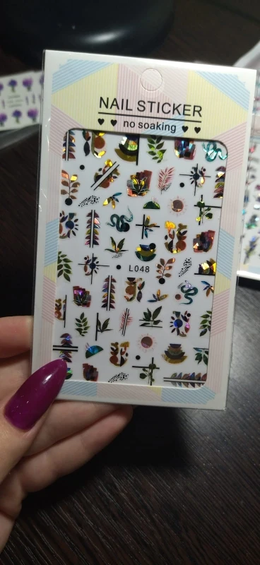 Я получил продукты Очень хорошо упакованный и красивое качество изображения 3D гвоздь смещены голографические наклейки цвета выглядят очень красиво и хорошая точность больше, чем положить его на ногти.