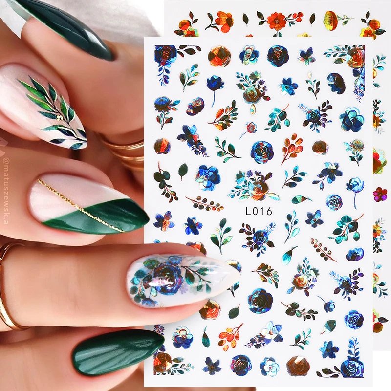 3D наклейки для ногтей, голографические наклейки, цветы, листья, весна, переводные наклейки для ногтевого дизайна, декоративные наклейки для маникюра, сделай сам