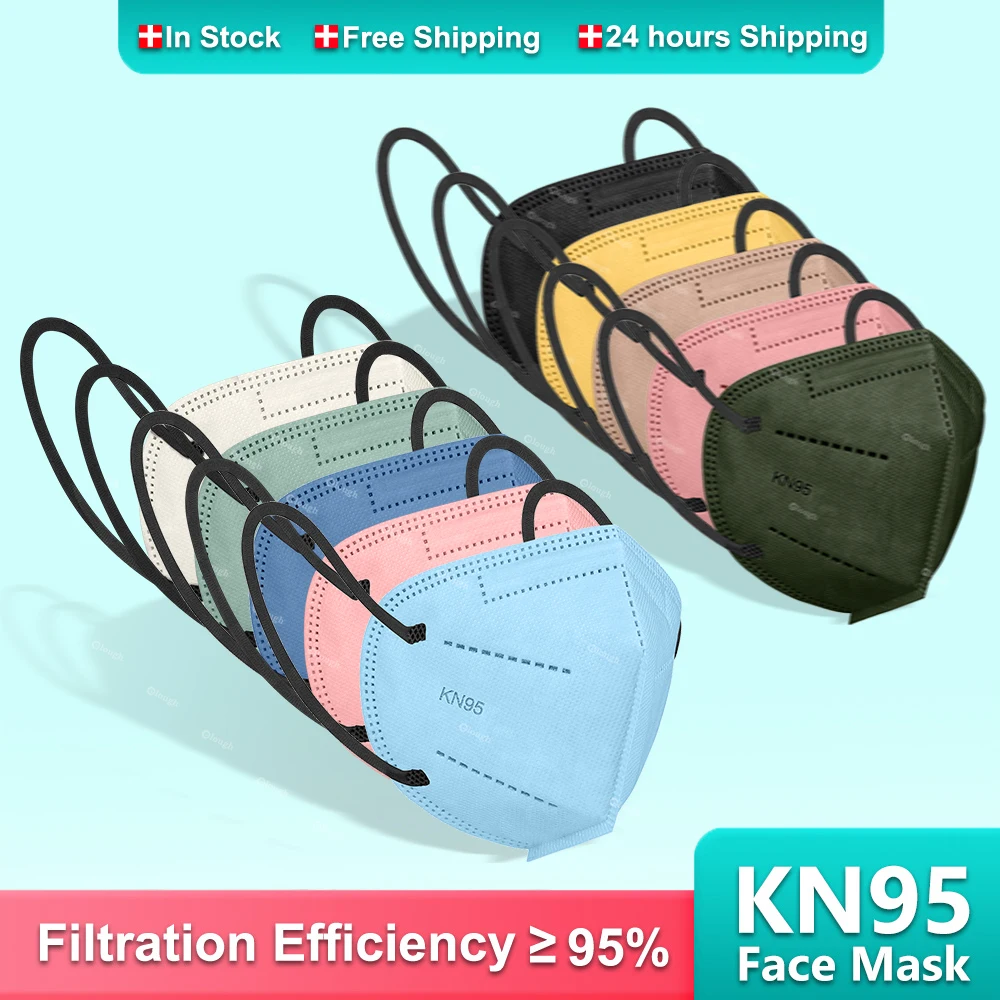 10-100PCS FFP2 Mask Black KN95 Mascarilla FPP2 Homologada Colores f...