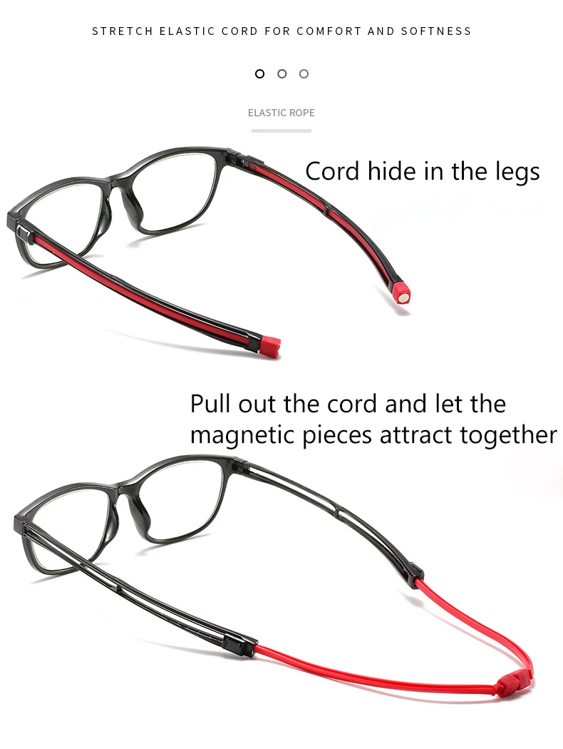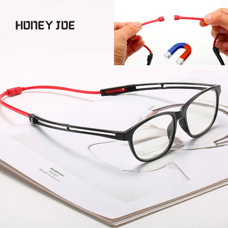 2021 Модные подвесные выдвижные магнитные женские очки для чтения, анти-синий светильник, пресбиопические мужские очки, растягивающийся эластичный шнур для комфорта и мягкости, дополнительный портативный светильник + 1,0 + 1,5 + 2,0 + 2,5 + 3,0 + 3,5 + 4,0