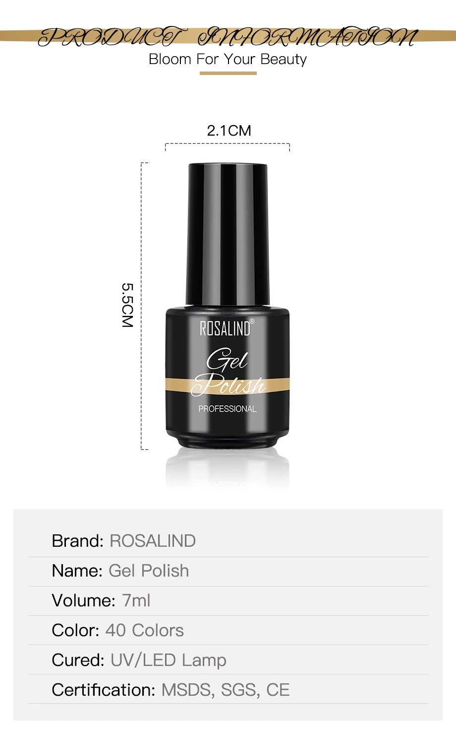 Характеристики Товара:Бренд: ROSALINDНазвание: чистый цветной гельОбъем: 7 млЦвет: 40 цветов sИзлеченная: УФ/Светодиодная лампа-Качество-наш первый приоритет.-Светильник, почти без запаха (только верхнее покрытие и основа имеют умеренный запах), мы применяем только органическую текстуру для защиты вашего здоровья.-Цвет будет сиять до 30 дней.-Цвета на выбор, подходят для всех случаев. Шаг за шагом:-1. Форма ногтя. Слегка смочите поверхность ногтевой пластины. Дезинфицировать.-2. Нанесите базовый слой основы от кутикулы до свободного края (не забудьте запечатать край ногтя). Высушите ногти под светодиодный светильник в течение 10 секунд или УФ-светильник в течение 2 минут.-3. Нанесите тонкое пальто отмачиваемого геля на выбор. Свободный край крышки. Лечение: 30 секунд в светодиодный светильник, или 2 минуты в УФ-лампе.-4. Повторите 2-е тонкое покрытие отмачиваемого гель-лака на ногти. Высушите под светодиодный лампой в течение 30 секунд или УФ-светильник в течение 2 минут.-5. Нанесите верхнее пальто. Свободный край крышки. Лечение: 30 секунд в светодиодный светильник.-6. Удалите липкий остаток на ногтях с помощью очищающего средства. Затем нанесите питающее масло кутикулы для увлажнения влаги в кутикулу и кожу вокруг ногтя. Для удаления:-1. Отмачивайте ногти в акриловом удалителе в течение 5 минут.-2. Аккуратно Наденьте на каждый ноготь всю эмаль для ногтей.Внимание:1. Объем-7 мл. Поскольку емкость бутылки составляет более 7 мл, гель для ногтей не будет полностью заполнен бутылкой!2. Плотно закрываются. Держите подальше от солнечного света. Хранить в недоступном для детей месте.