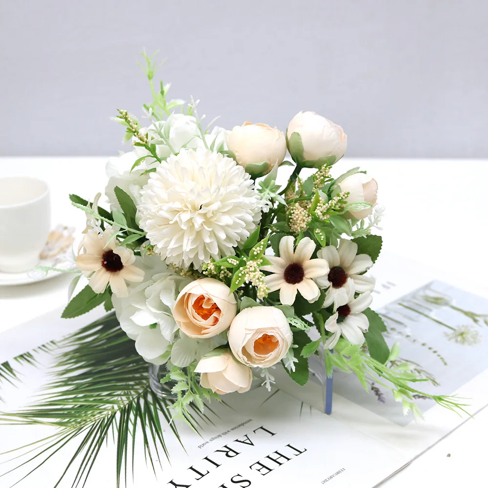 Новые искусственные шелковые розы, Красивые Простые букеты пионов, свадебное украшение для дома, реквизит для стрельбы, искусственный цветок, зеленые растения