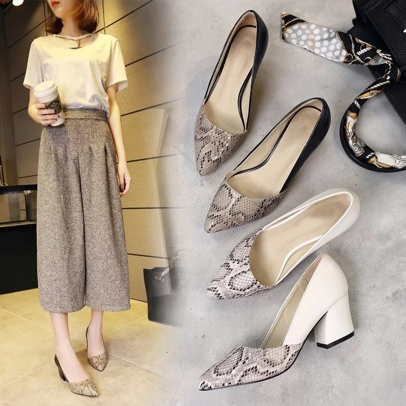 Женские туфли на высоком каблуке 5 см, туфли-лодочки с острым носком и змеиным узором, черные туфли для вечеринки, Новинка лета 2022