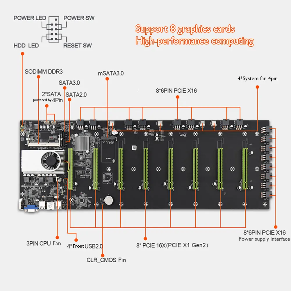 Материнская плата и чехол для майнинга BTC S37 D37 T37, расширитель 8 PCIE 16X USB2.0 DDR3 слот SODIMM, поддержка 106613331600 МГц для майнинга BTC