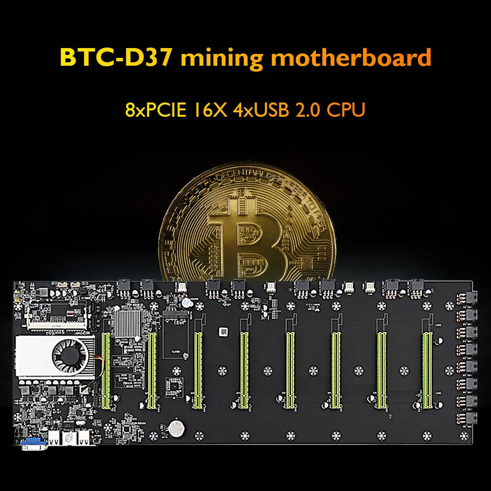 Материнская плата для майнинга BTC D37 с поддержкой 8 GPU, графичес...