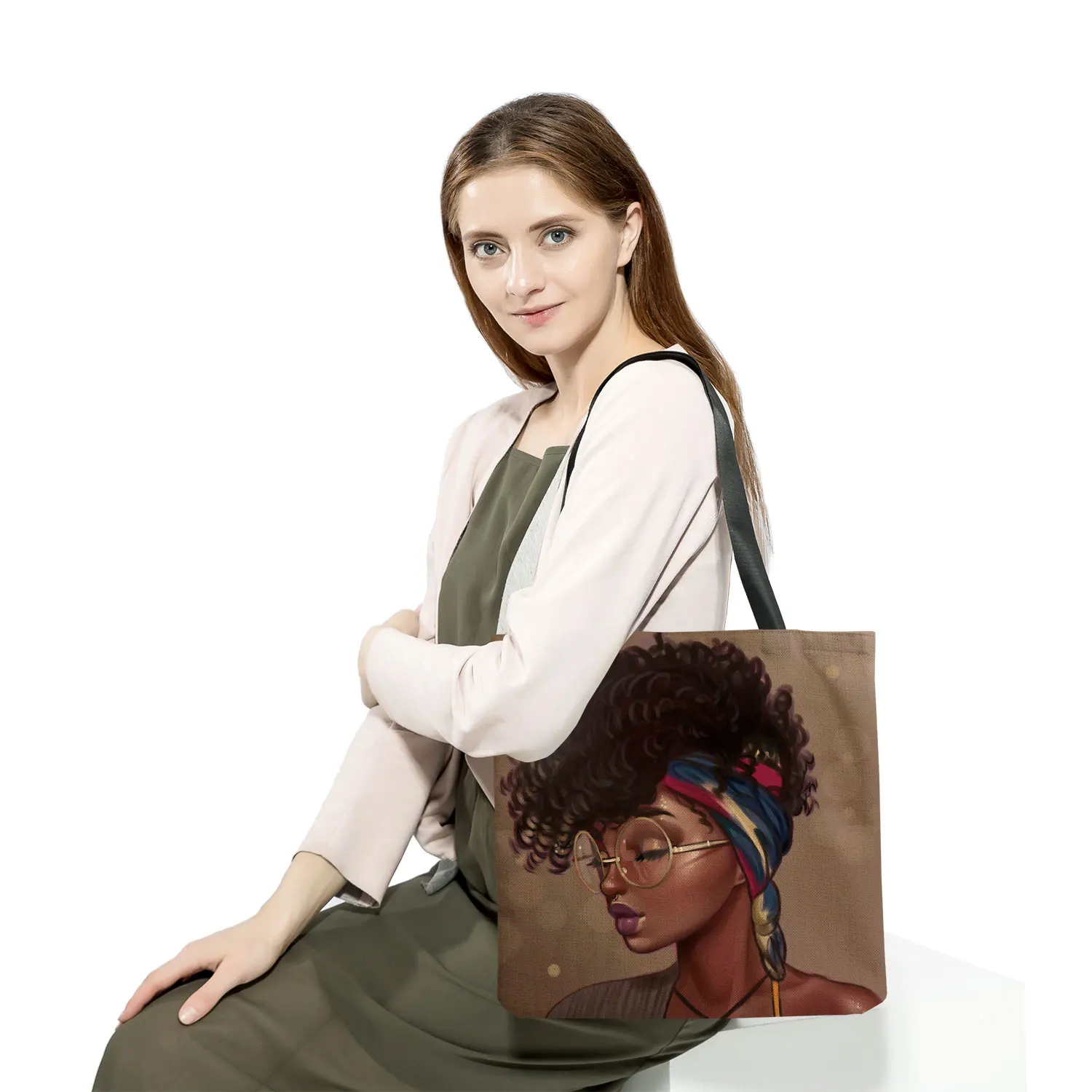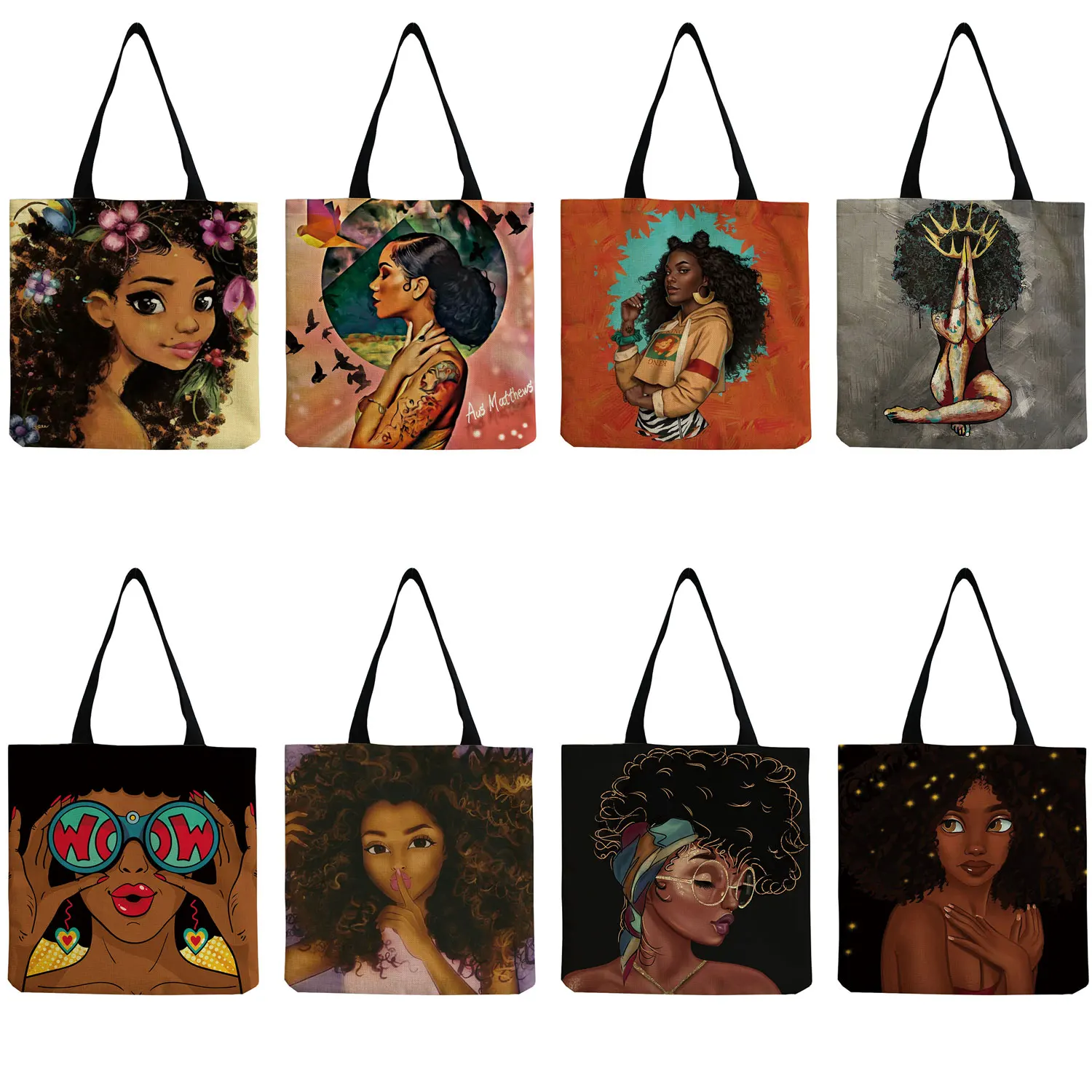 Популярная Сексуальная черная дизайнерская сумка с рисунком Африканской девушки, Экологичные многоразовые сумки для покупок для продуктов, Женская Повседневная Сумка-тоут