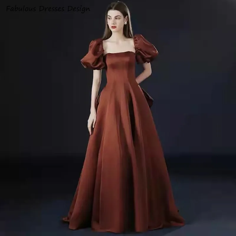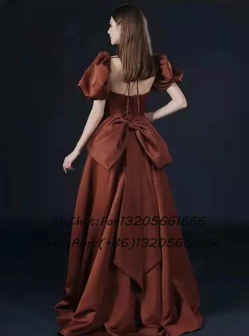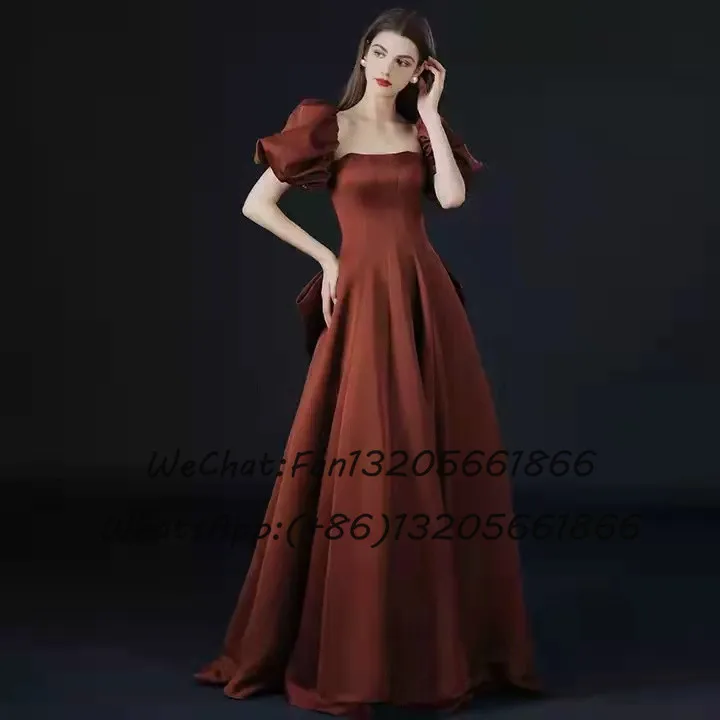 ТРАПЕЦИЕВИДНОЕ длинное платье подружки невесты, платье принцессы с пышными короткими рукавами и квадратным вырезом, платье для свадебной вечеринки с открытой спиной и большим бантом, платье для выпускного вечера, 2022