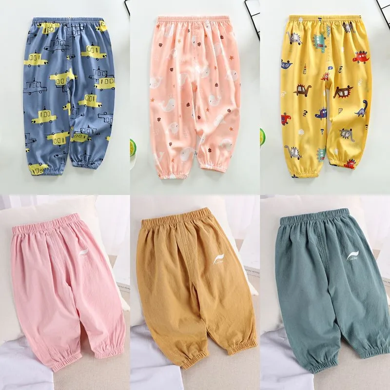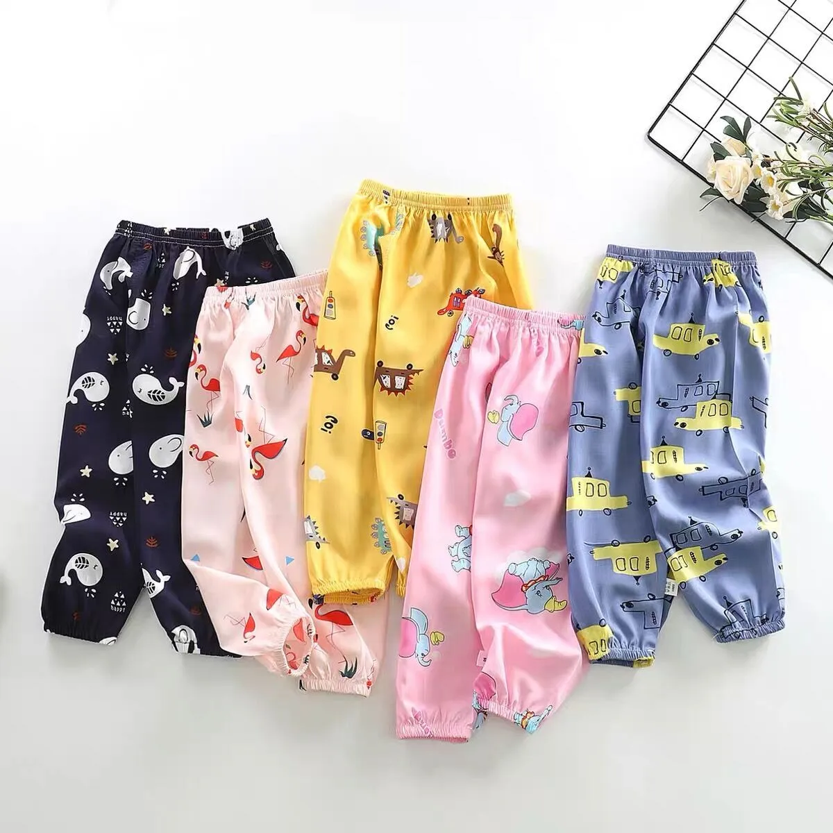 Детские брюки с принтом, милые брюки для маленьких девочек, летняя тонкая детская одежда с защитой от внешнего света для мальчиков