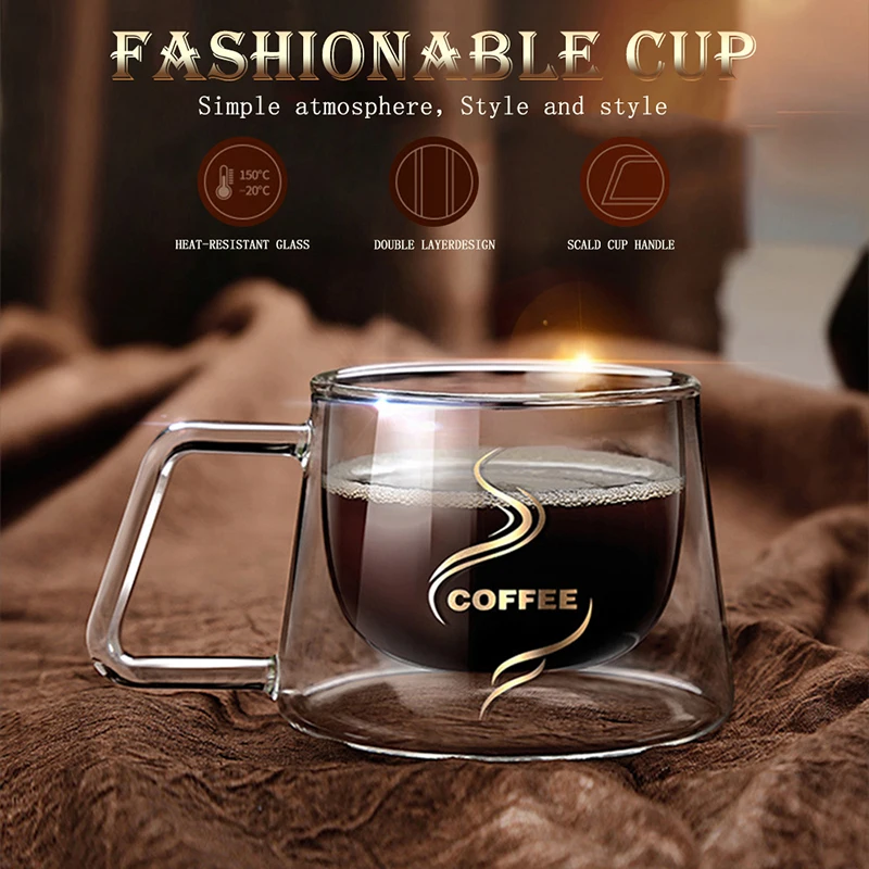 200 мл простая двухслойная прозрачная термоизолированная стеклянная кофейная кружка стеклянная чашка с двойными стенками Вакуумная чашка для подарка