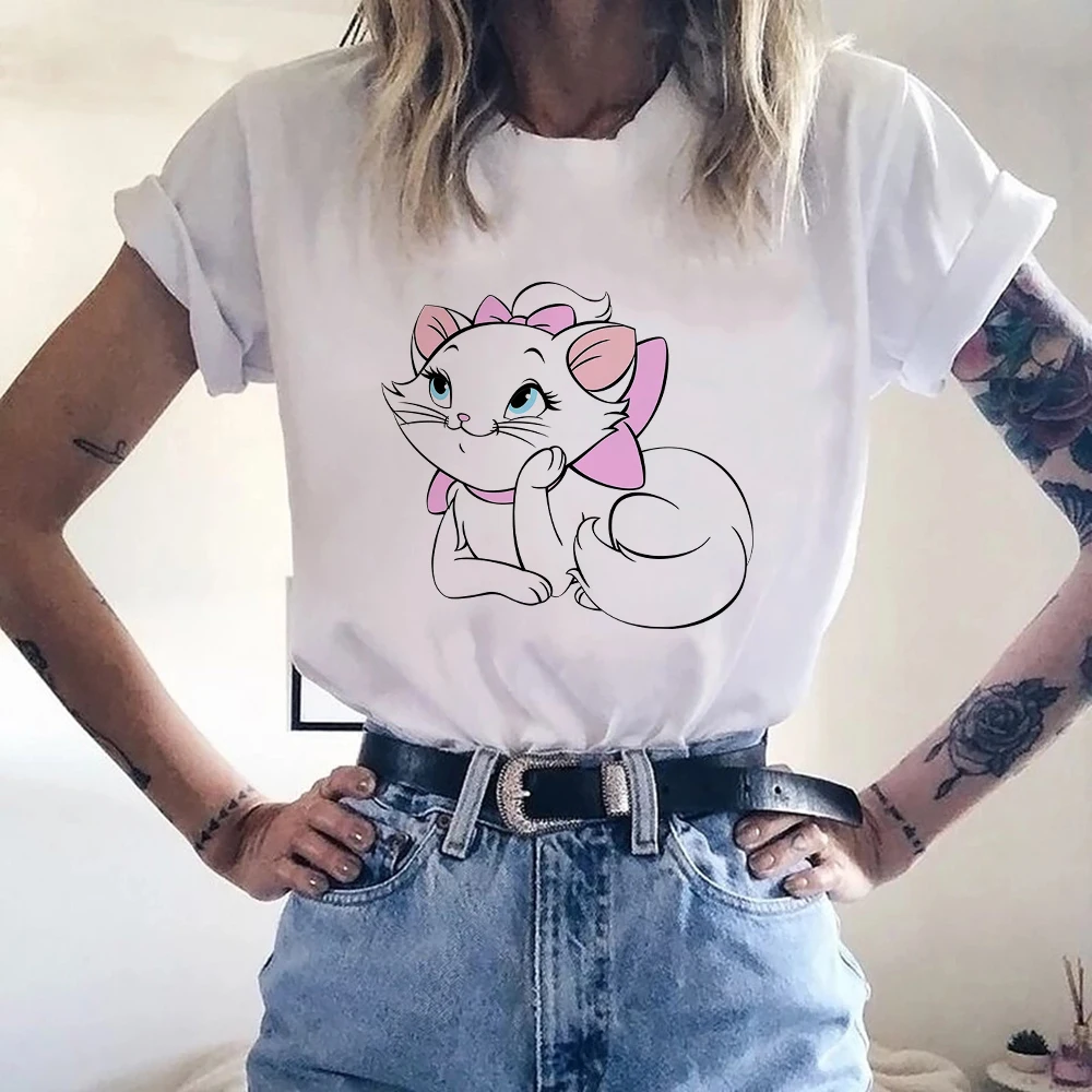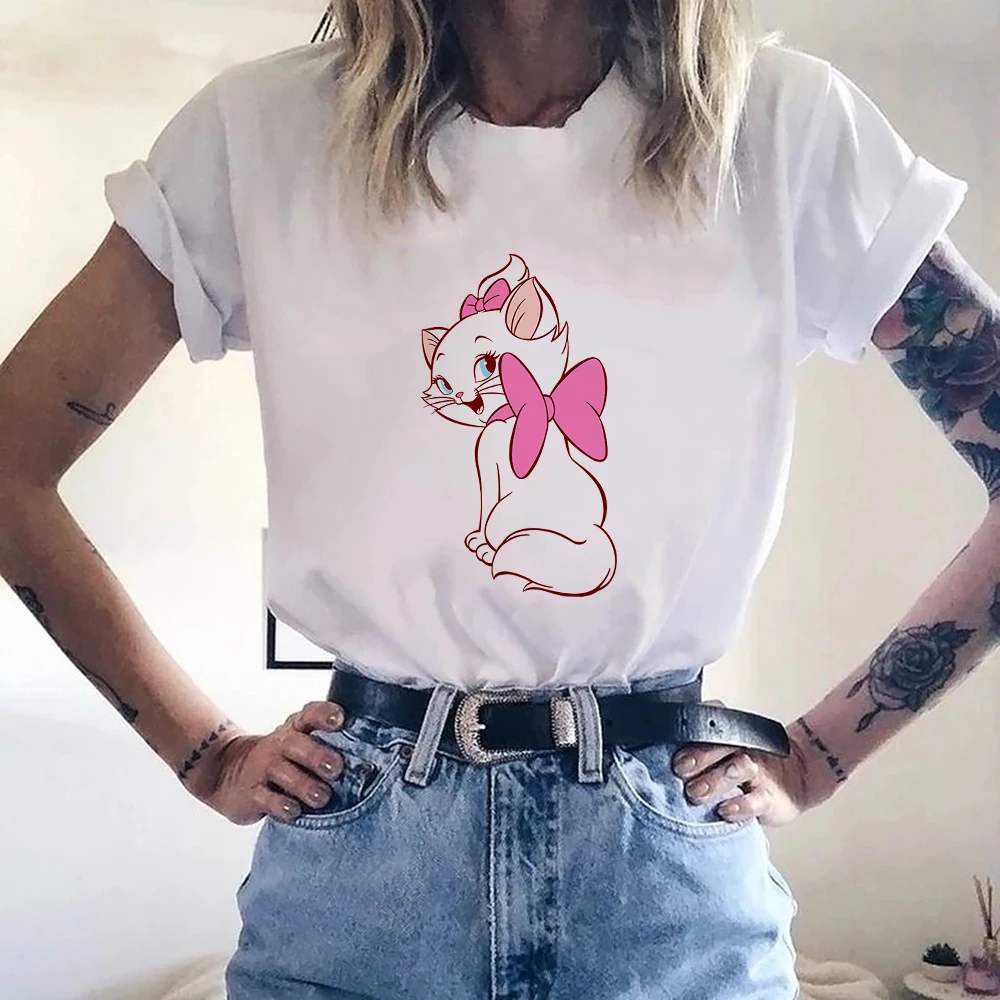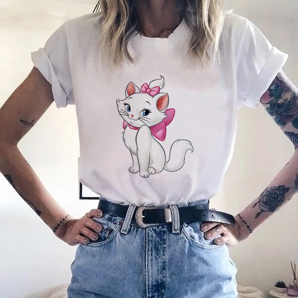 Футболка Kawaii кошка Мэри с рисунком зонтика симпатичная серия Диснея с принтом женская одежда повседневная и удобная футболка