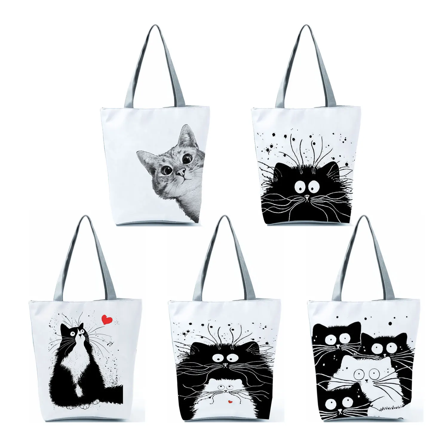Индивидуальная сумка с принтом для путешествий, женские сумки с милым котом, Повседневная Сумка-тоут с принтом, сумка через плечо, Экологичная сумка для покупок, сумки-тоут