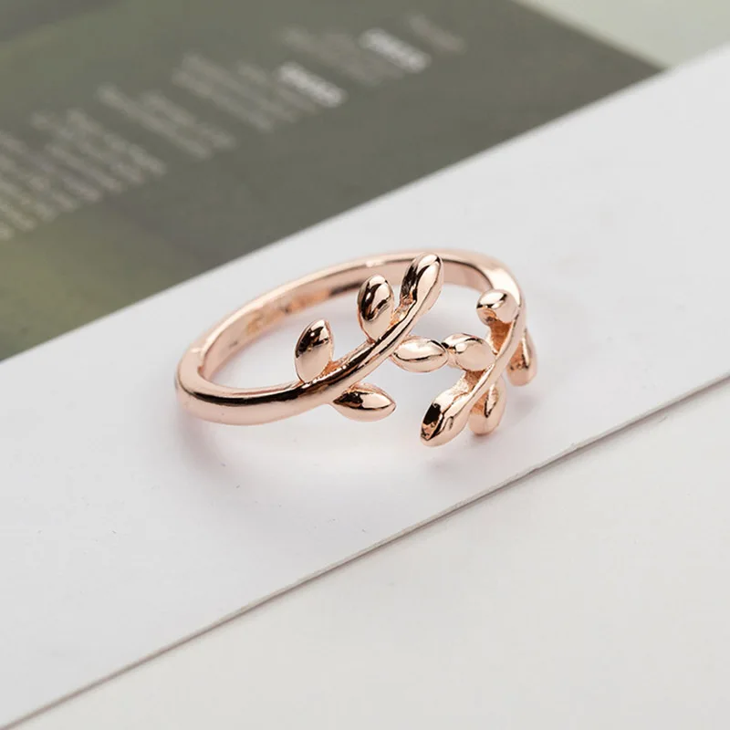Элегантное регулируемое Открытое кольцо, кольцо с листьями оливкового дерева, женские обручальные кольца, розовое золото, костяшки