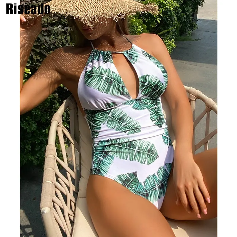 Riseado, Слитные купальники с принтом листьев, новинка 2022, купальник для женщин, с рюшами, сексуальный боди, Холтер, купальный костюм для женщин, пляжная одежда
