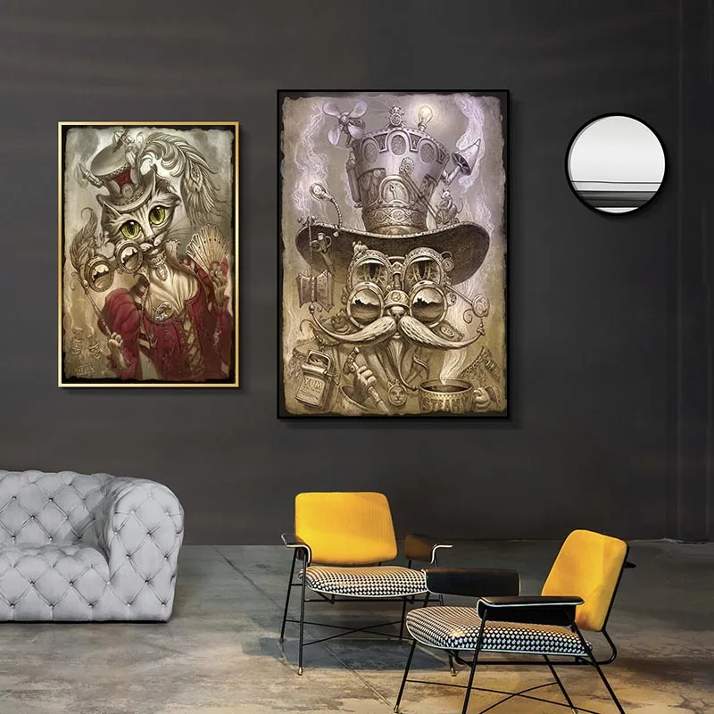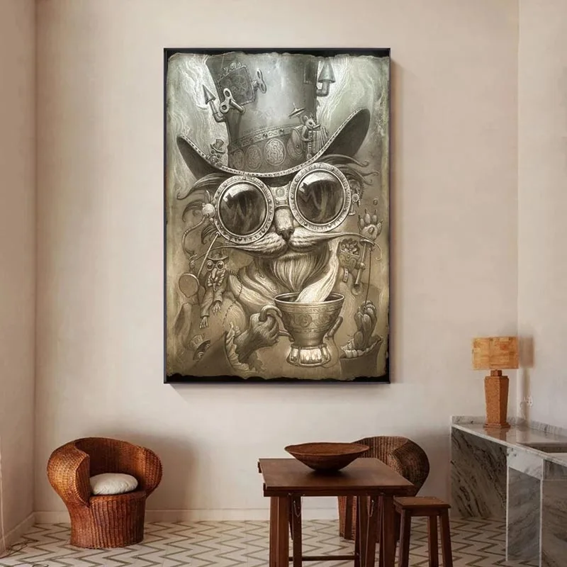 Постер с мультяшными животными, стимпанк, кошка, холст, живопись и печать, настенное искусство, скандинавский Декор для гостиной, дома, картины