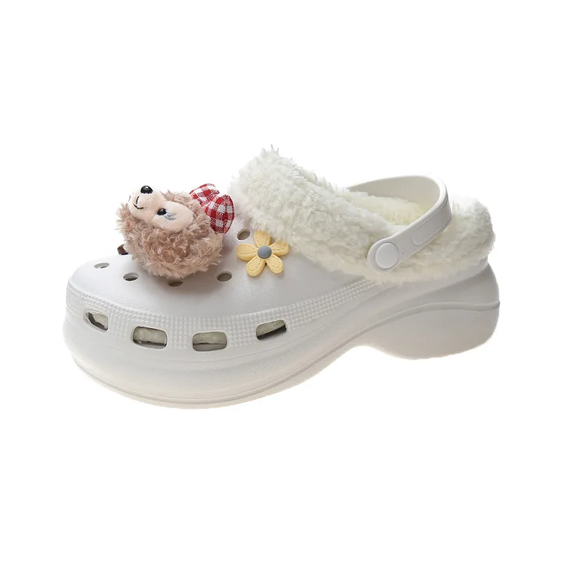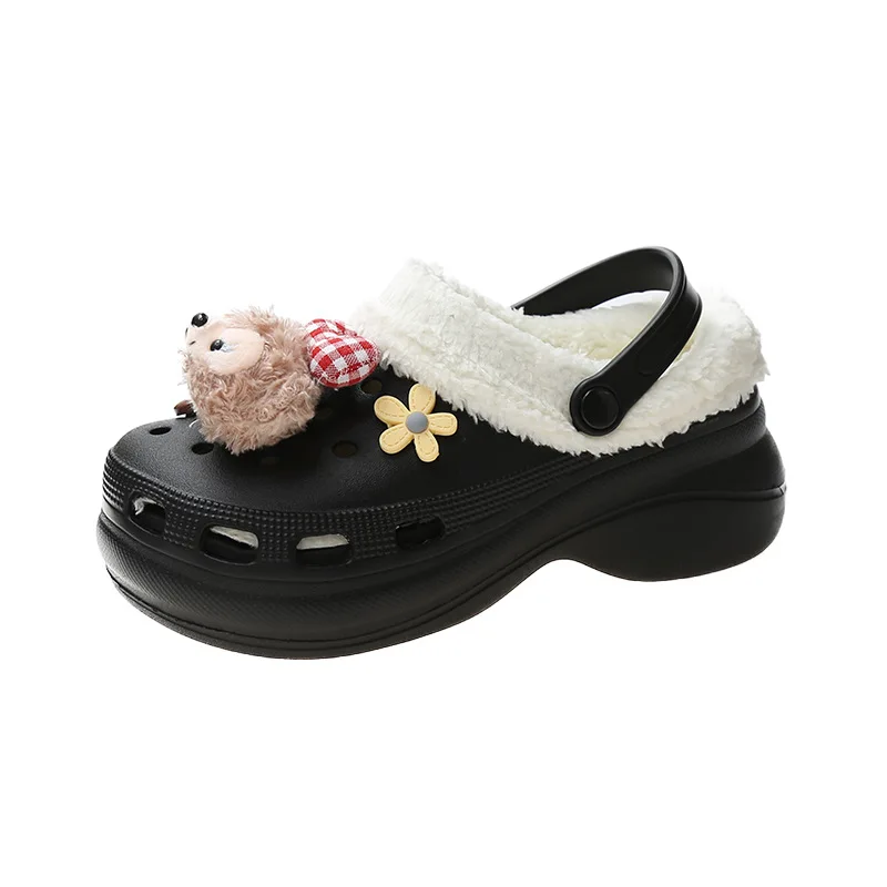 Сабо женские, зимние, черные, на танкетке, садовые туфли, меховые, ...