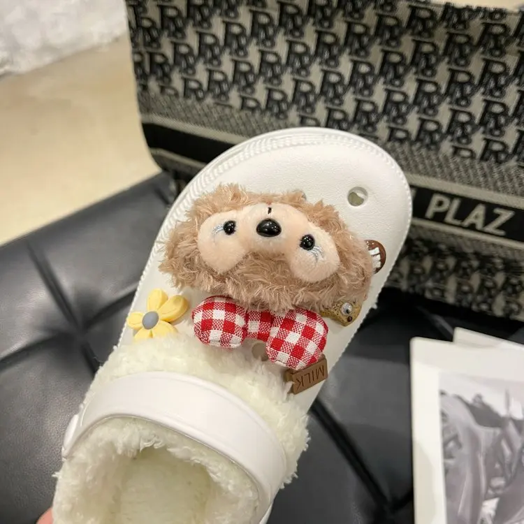 Мюли женские зимние с мультяшным принтом, мягкие теплые плюшевые Нескользящие, повседневная обувь на плоской подошве, 2022