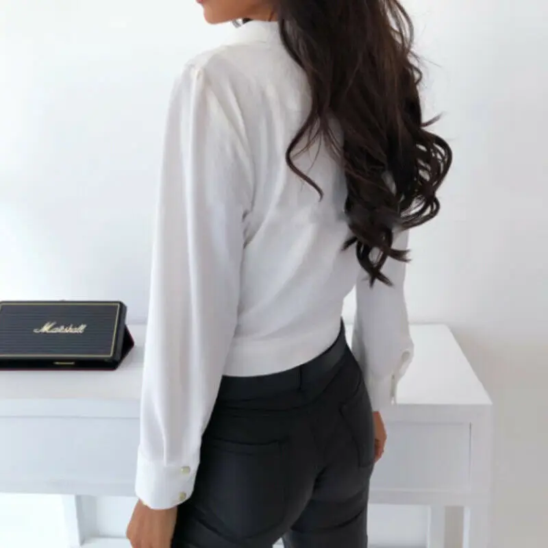 Женские офисные Футболки с длинным рукавом v-образным вырезом спере...