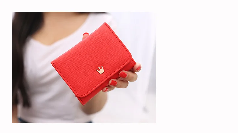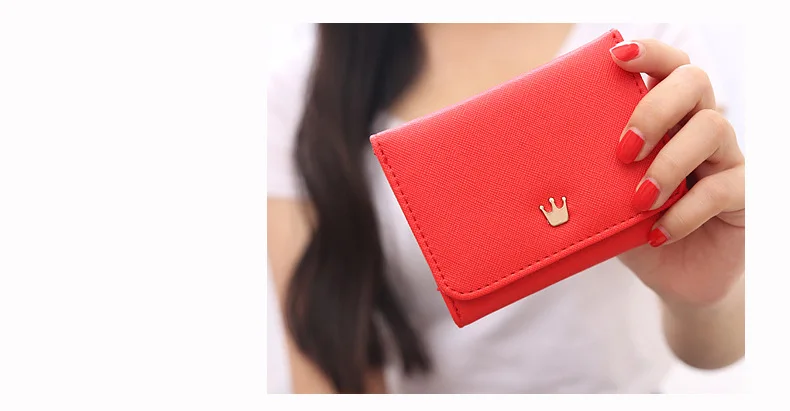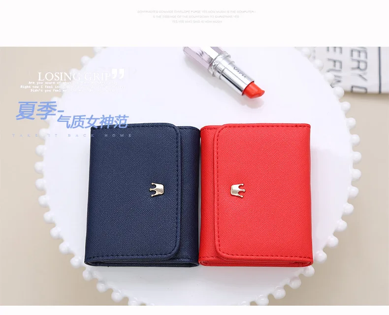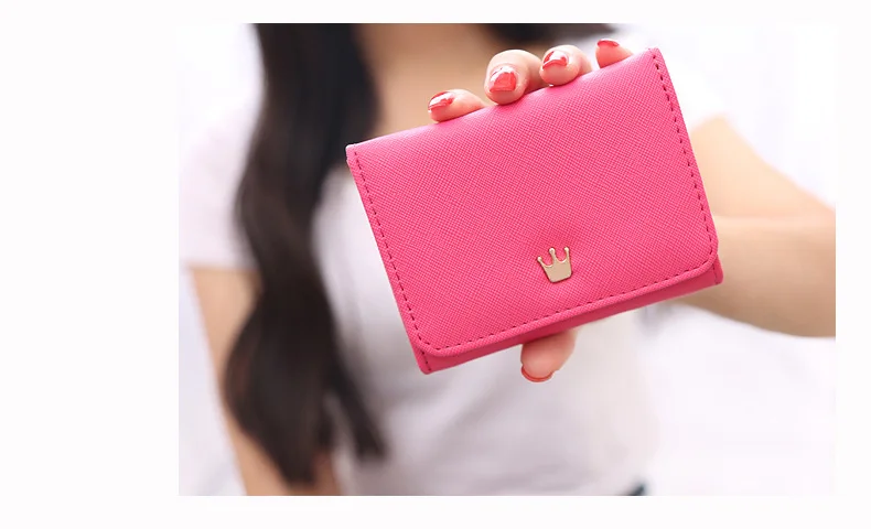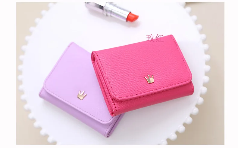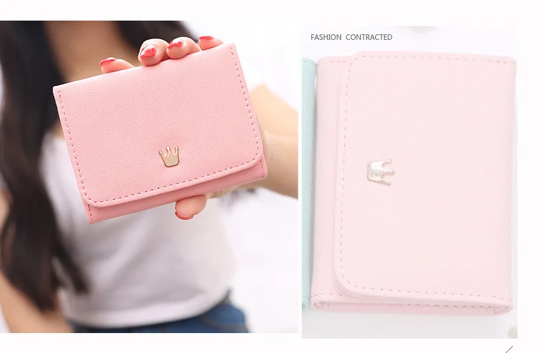 Модный женский кошелек с короной, новинка 2022, короткий кошелек из искусственной кожи с пряжкой, студенческий кошелек с монетницей, милый маленький кошелек тройного сложения