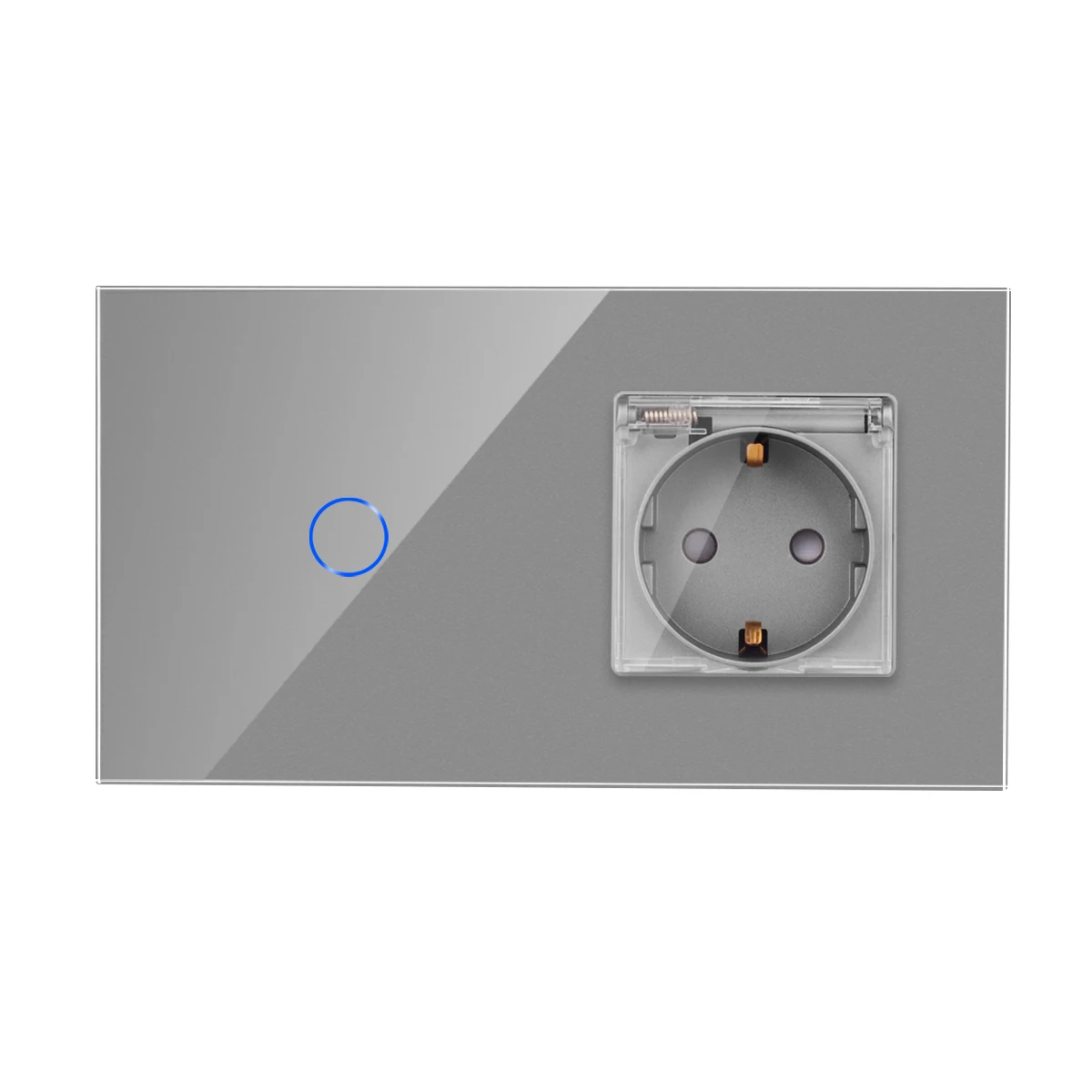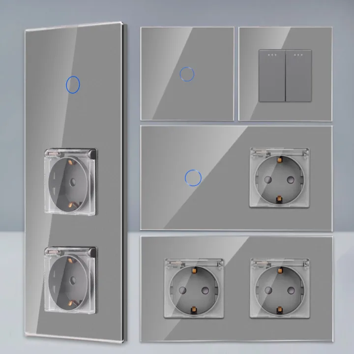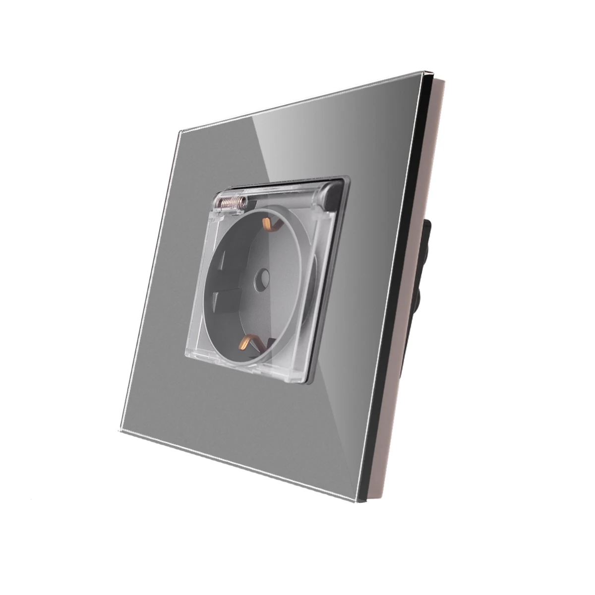Bingoelec серый световой сенсорный выключатель и водонепроницаемая розетка с прозрачной стеклянной панелью для домашнего ремонта