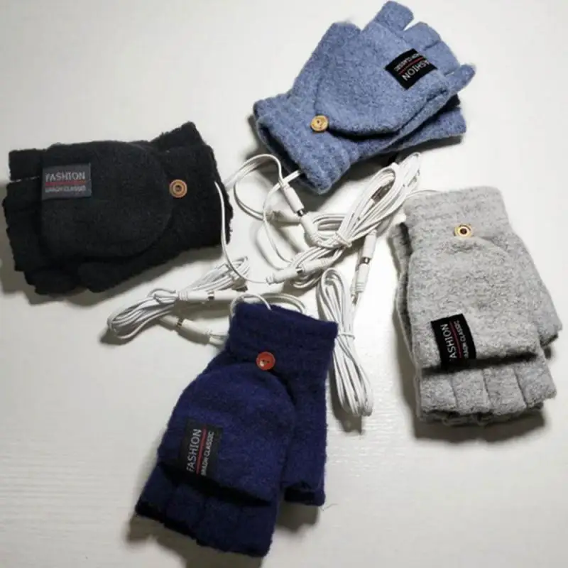 Электрические зимние перчатки с USB, теплые перчатки с подогревом, вязаные перчатки с откидной крышкой, перчатки для улицы, катания на лыжах, рыбалки, велосипедные перчатки