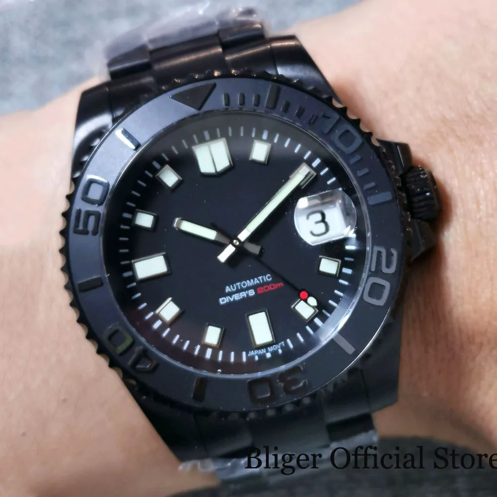 Движение: 24 Драгоценности seiko NH35A движение;Циферблат: черный циферблат; Дата в 3 часа.Чехол: черный чехол из нержавеющей стали с PVD покрытием. Черный керамический ободок.Чехол Диаметр: 40 мм без короныРемешок: 20 мм Ширина oyster ремешок.Тип застежки: скользящая пряжка.Стекло: сапфировое стекло.Функция: окно даты в 3 часа, лупа даты.