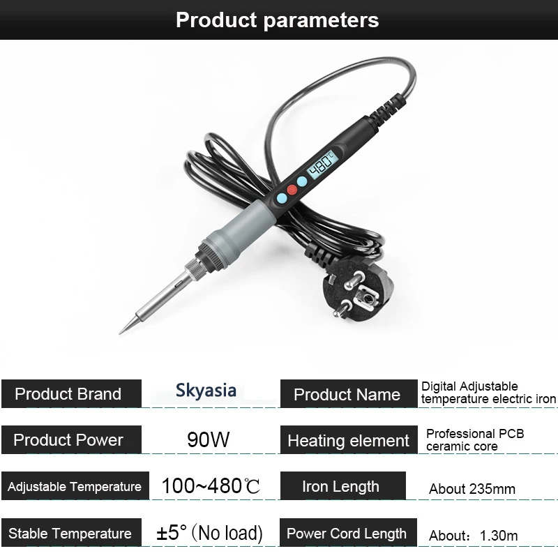 Набор инструментов Skyasia, паяльник мощностью 90 Вт, пистолет, цифровой ЖК-дисплей, контроль температуры, Электрический паяльник