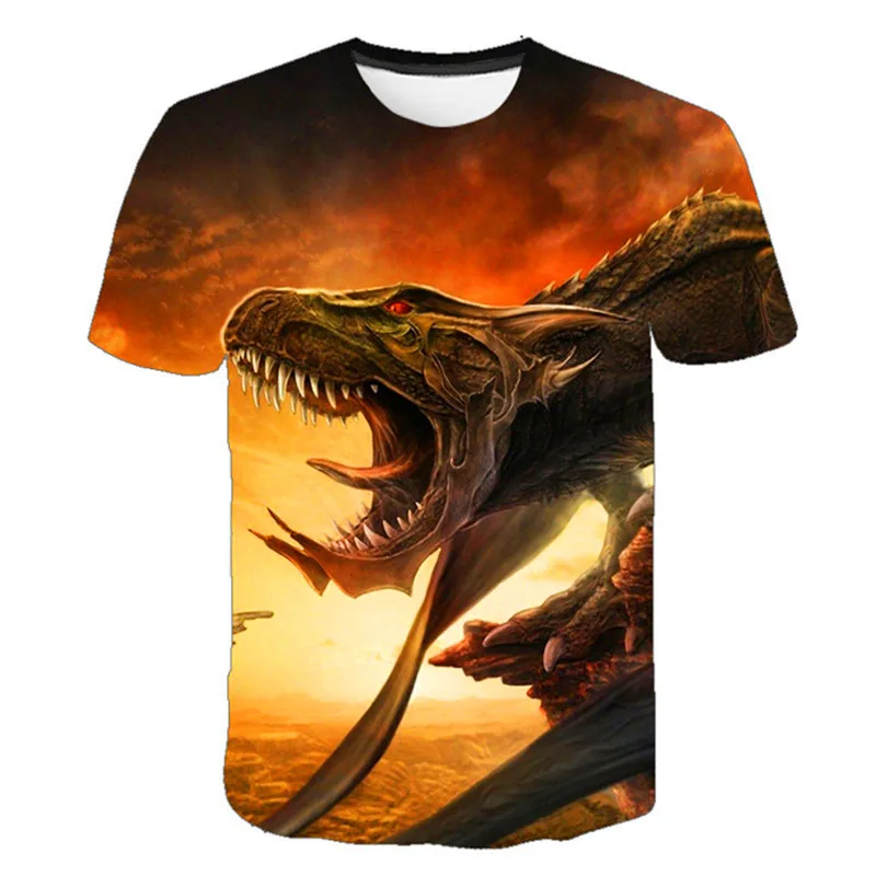 Футболка Летняя повседневная с круглым вырезом, коротким рукавом и 3D-принтом динозавров