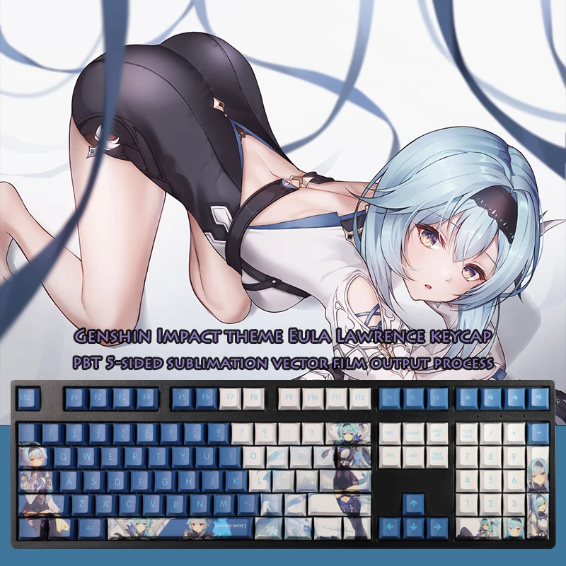 Механическая клавиатура, колпачки клавиш 108 клавиш, тема воздействия Genshin Eula Lauren PBT, стандартная конфигурация колпачков клавиш без масла