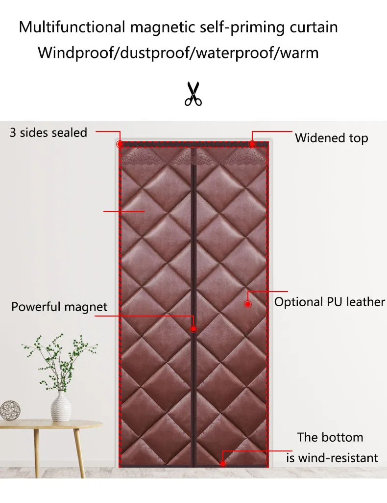 Зимняя теплая дверная штора Магнитная теплоизоляция Теплая ветрозащитная перегородка Звукоизоляция дверные шторы без перфорации