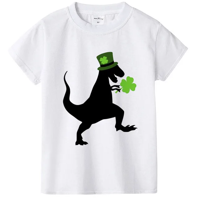 Счастливый динозавр, день Патрика, зеленая футболка, счастливые бел...