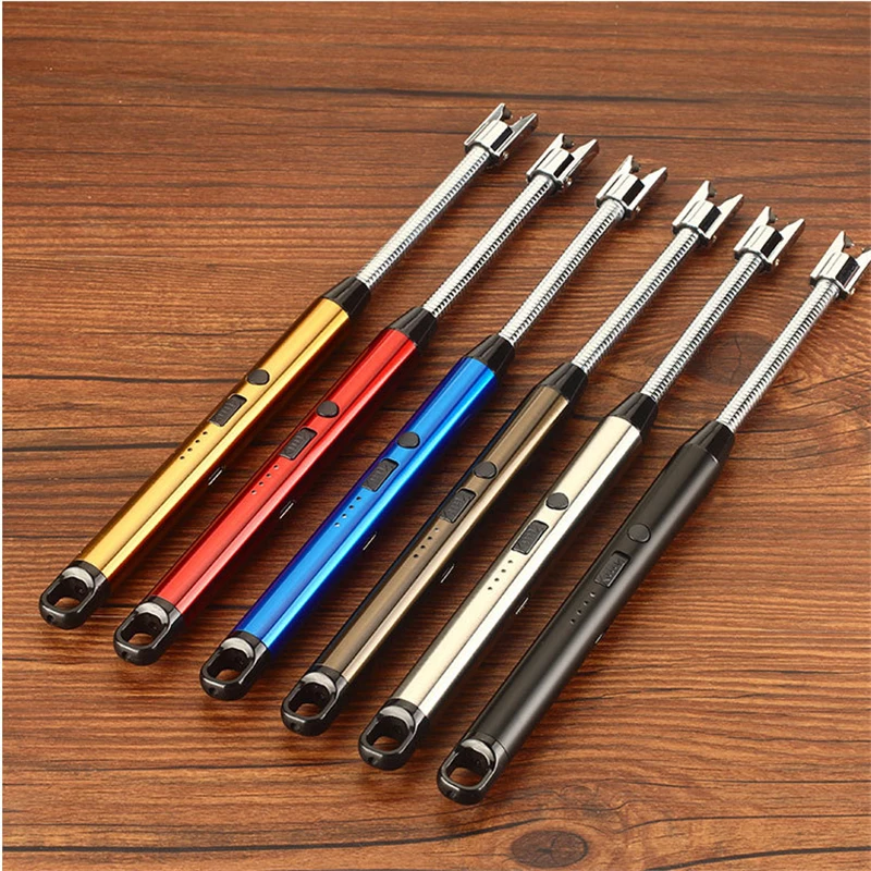 Практичная USB перезаряжаемая длинная кухонная ветрозащитная светодиодная плазменная дуга для барбекю беспламенные зажигалки светодиодный ным дисплеем
