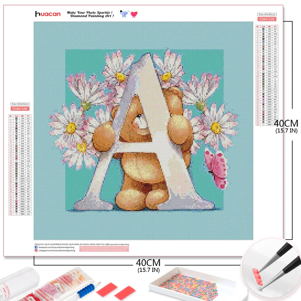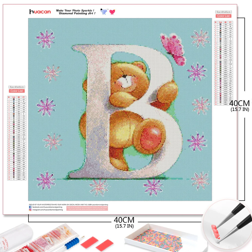 Алмазная 5D картина HUACAN сделай сам с буквами, мозаика из страз, мультяшная вышивка медведя, стразы, картина для украшения стен