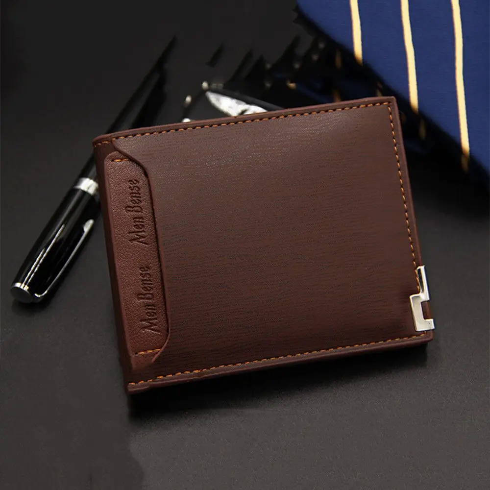Мужской кошелек двойного сложения из воловьей кожи, деловой бумажник для кошельков с RFID-блокировкой, портмоне для мужчин, 1 шт.
