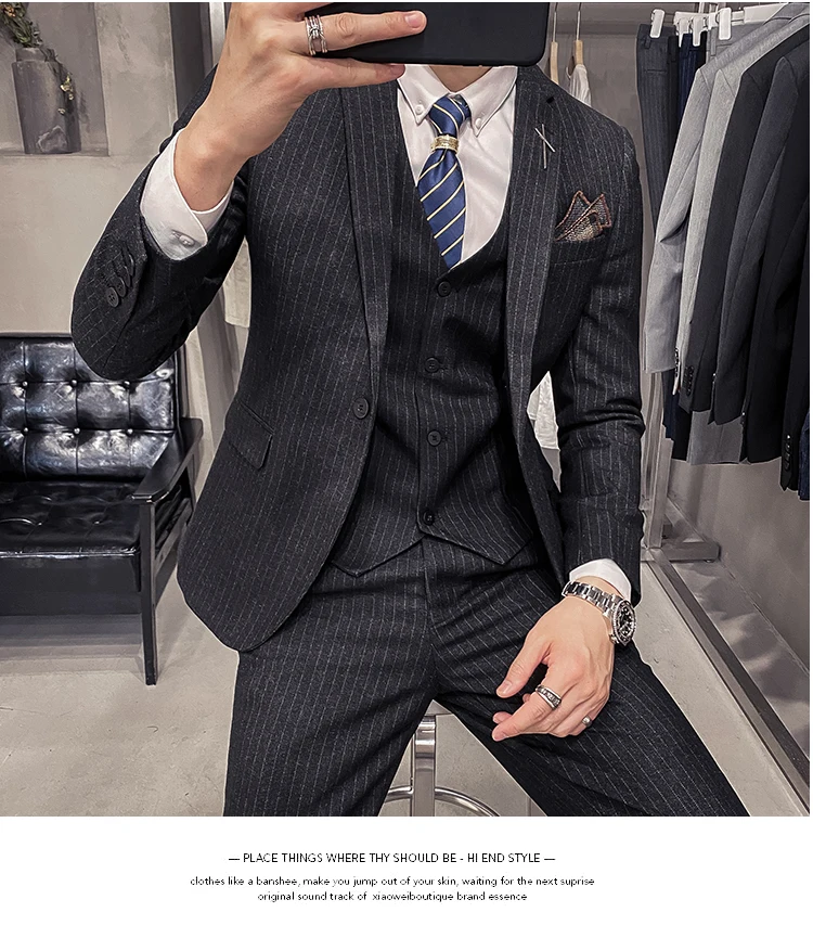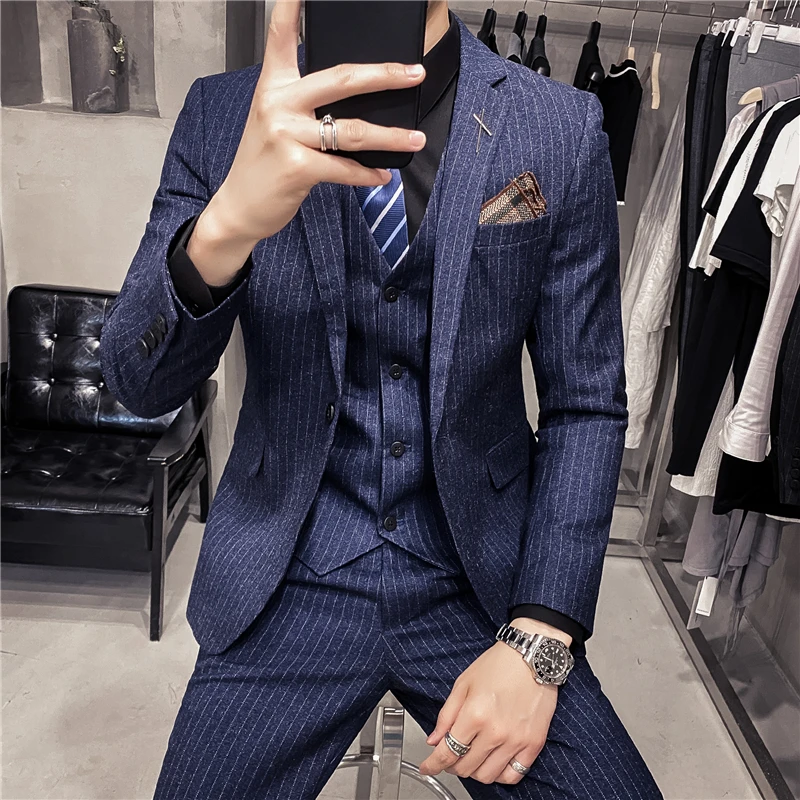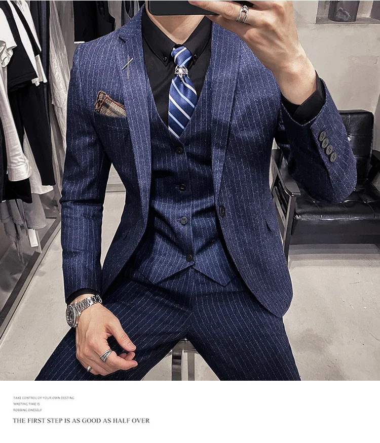 Мужские корейские блейзеры 6XL 7XL (куртки + жилет + брюки), облега...