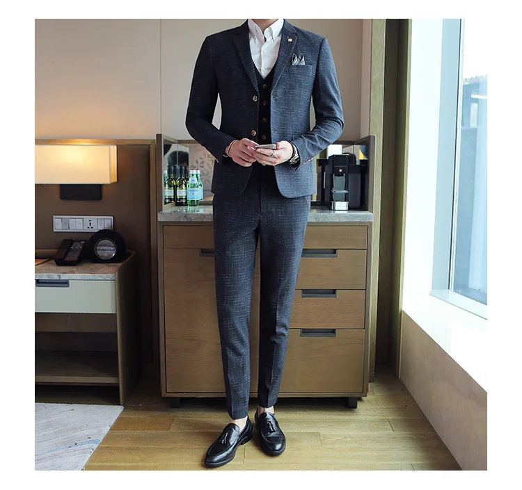 Мужской стиль, деловые повседневные облегающие свадебные костюмы для мужчин (пиджак + брюки + жилет), официальный офисный костюм для жениха, 3 предмета, Размер 7XL