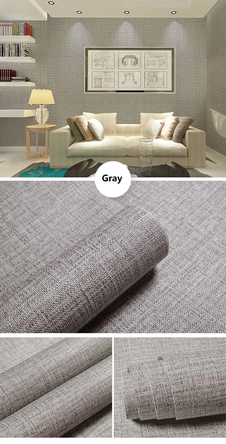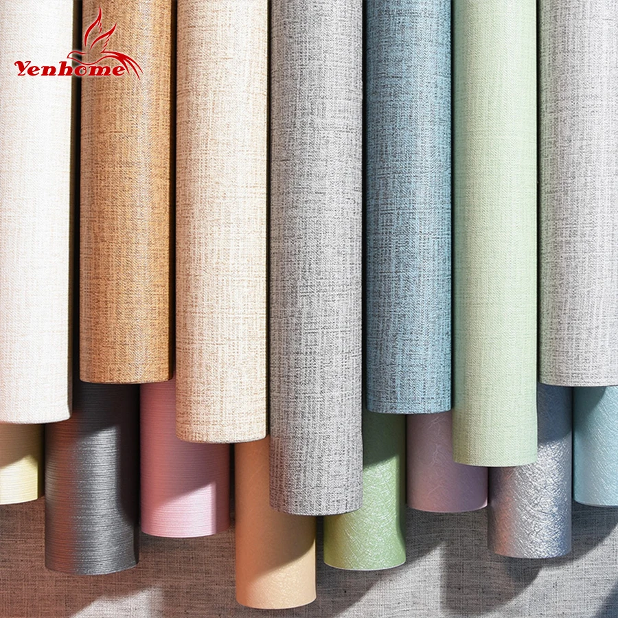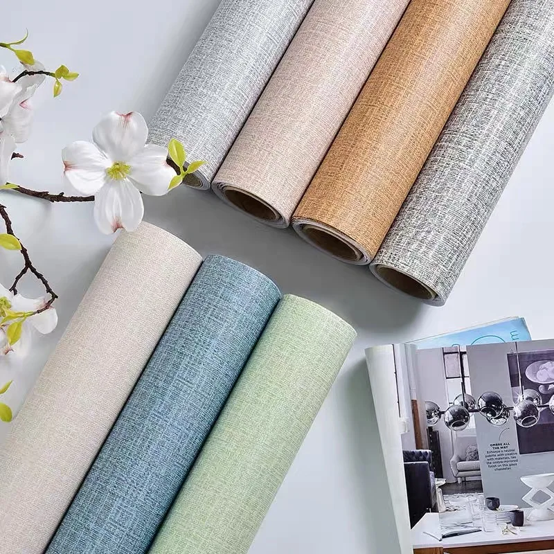 Самоклеящиеся однотонные обои, Современная Текстура льна, ПВХ, водо...