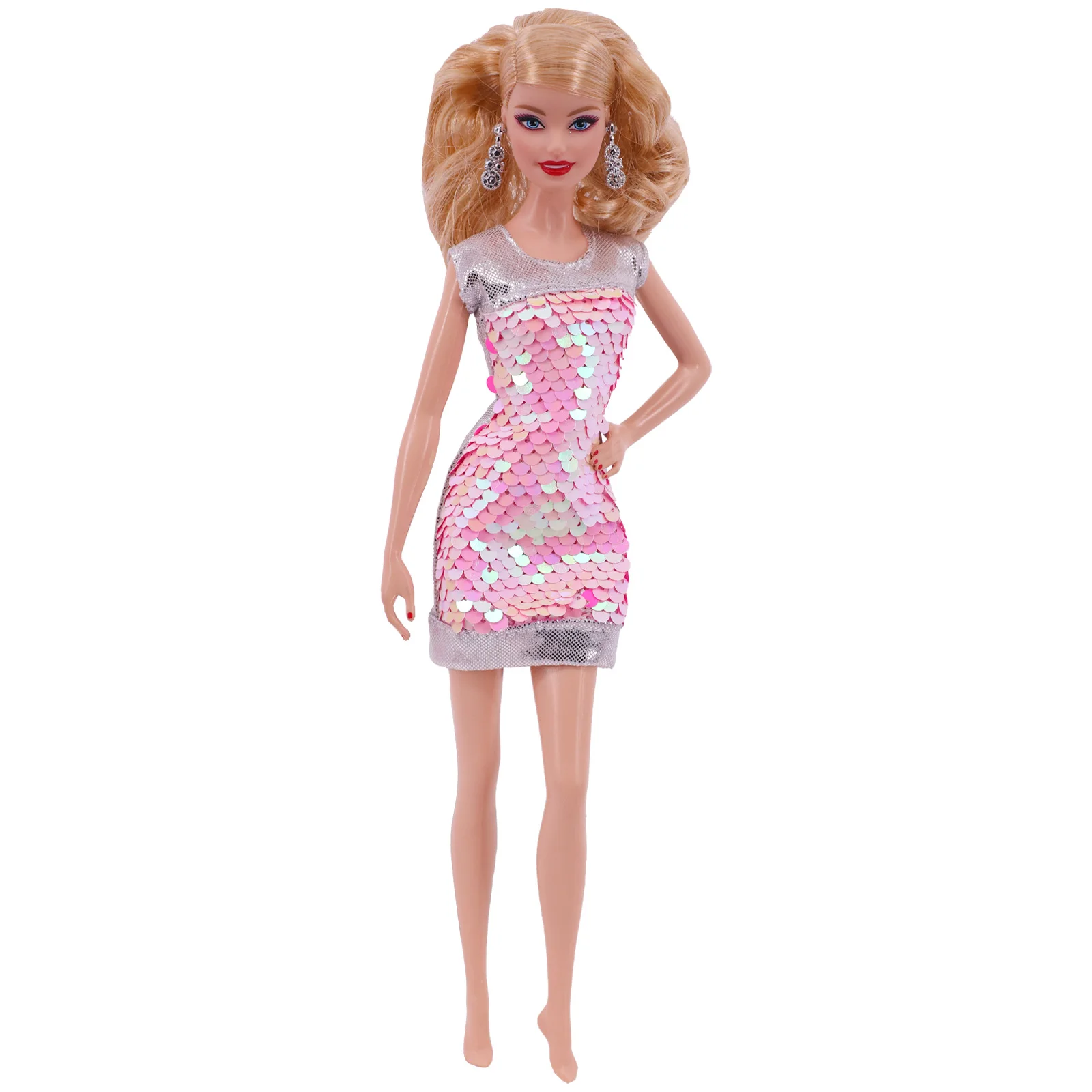 Одежда для куклы Барби, модное платье с блестками для шарнирных кук...